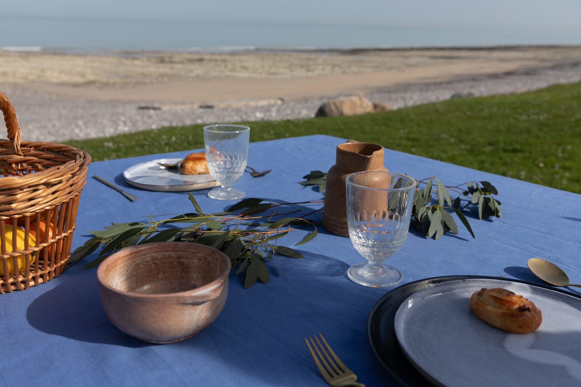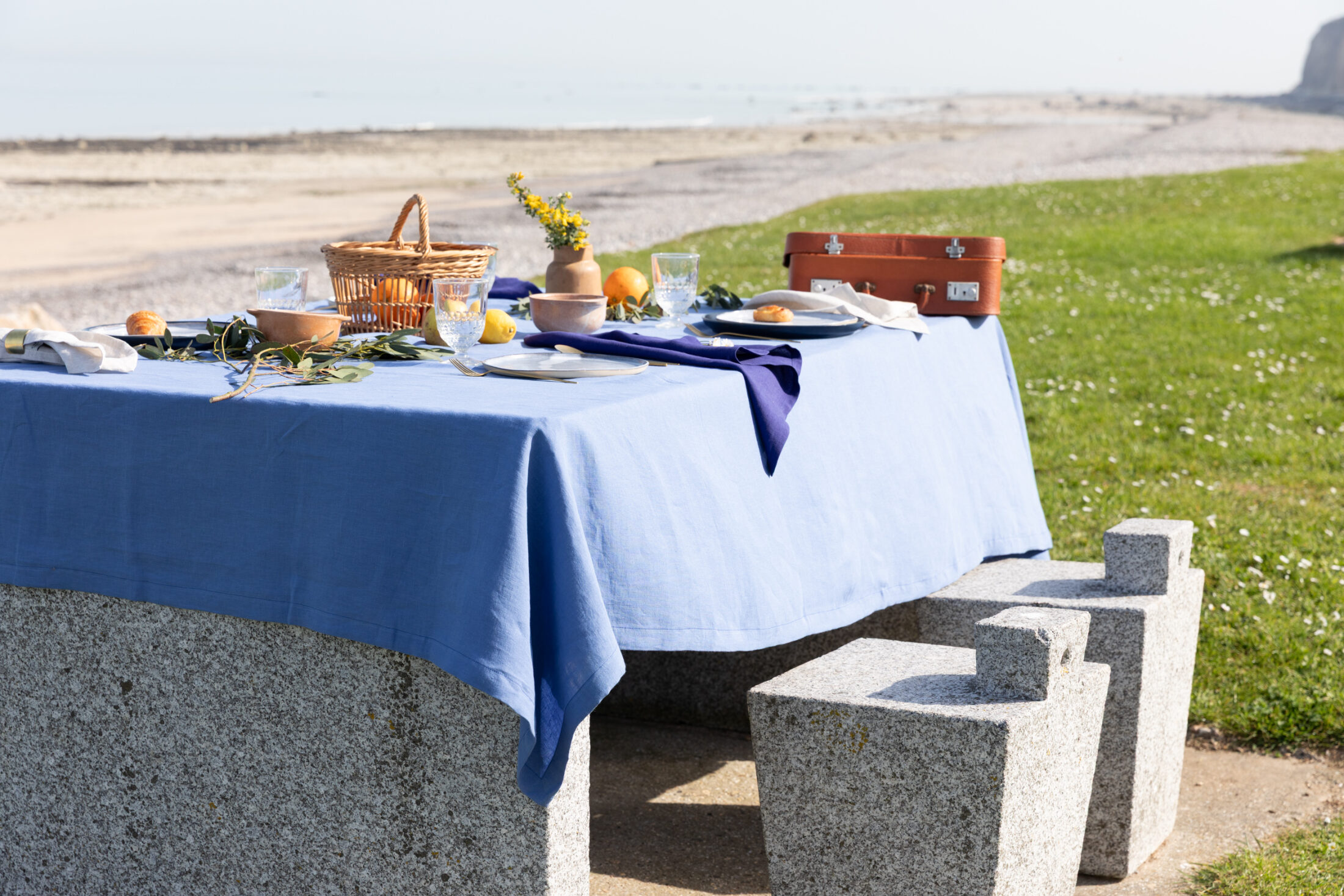Confectionnée en pur lin normand, cette nappe allie esthétique et durabilité. Le lin est une fibre naturelle particulièrement résistante, qui s’adoucit au fil des lavages tout en conservant sa beauté. Les détails minutieux, comme les coins capuchons et les ourlets soignés, témoignent du savoir-faire artisanal d’Embrin. Le lin lavé ne nécessite pas de repassage et se nettoie facilement, offrant une praticité idéale pour un usage quotidien.