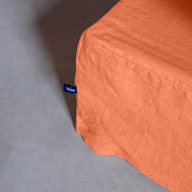 Vous souhaitez harmoniser votre linge de lit ? Découvrez aussi notre drap housse en lin lavé dans la même couleur abricot.