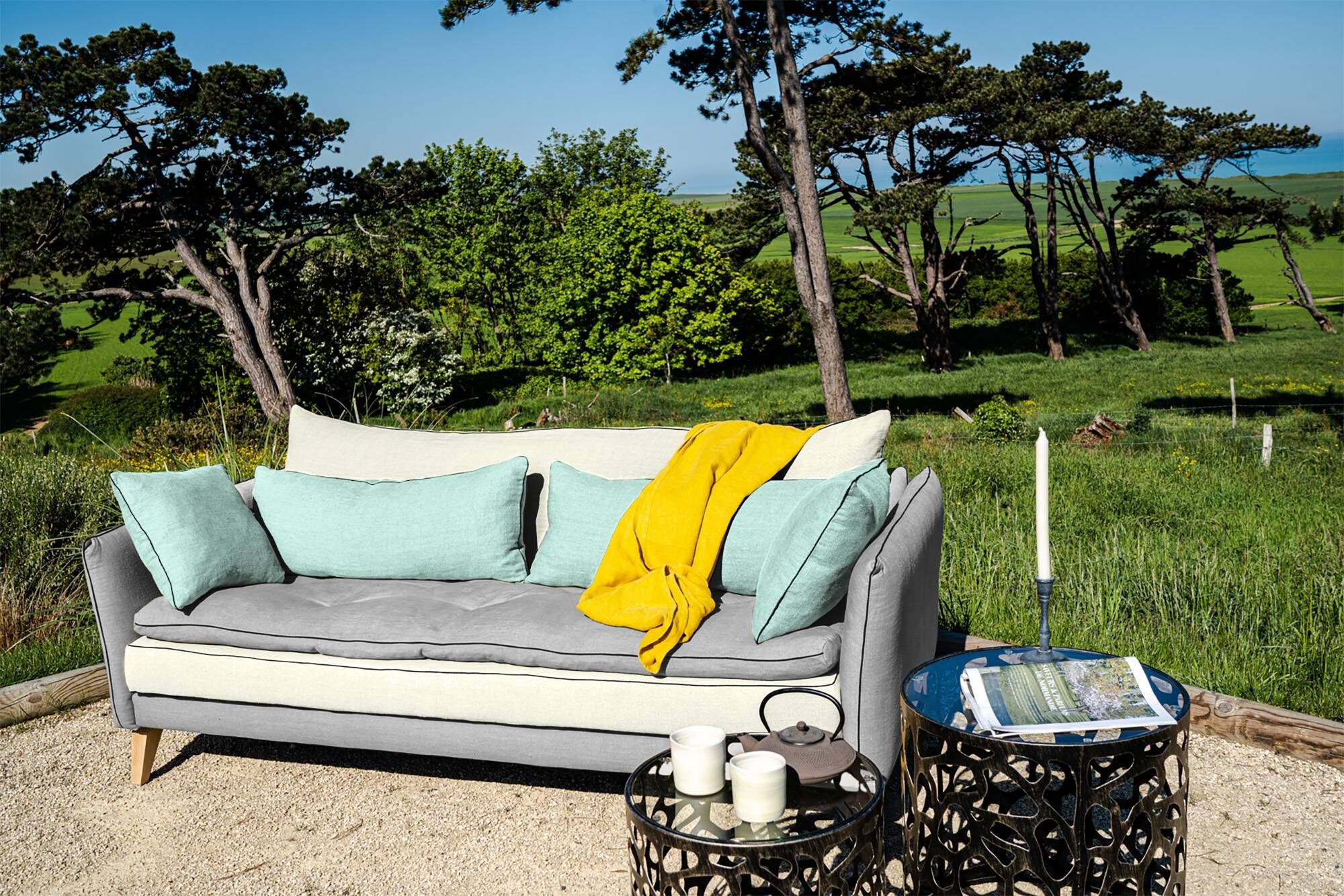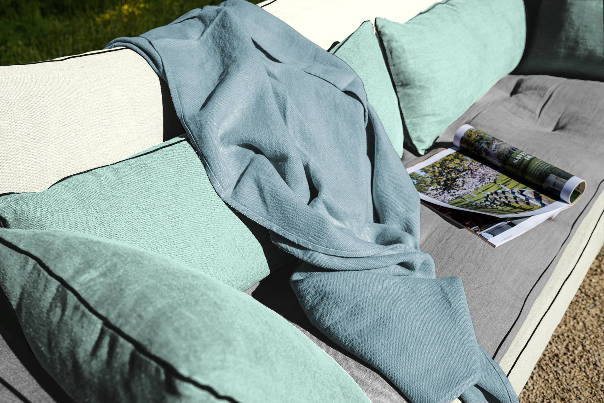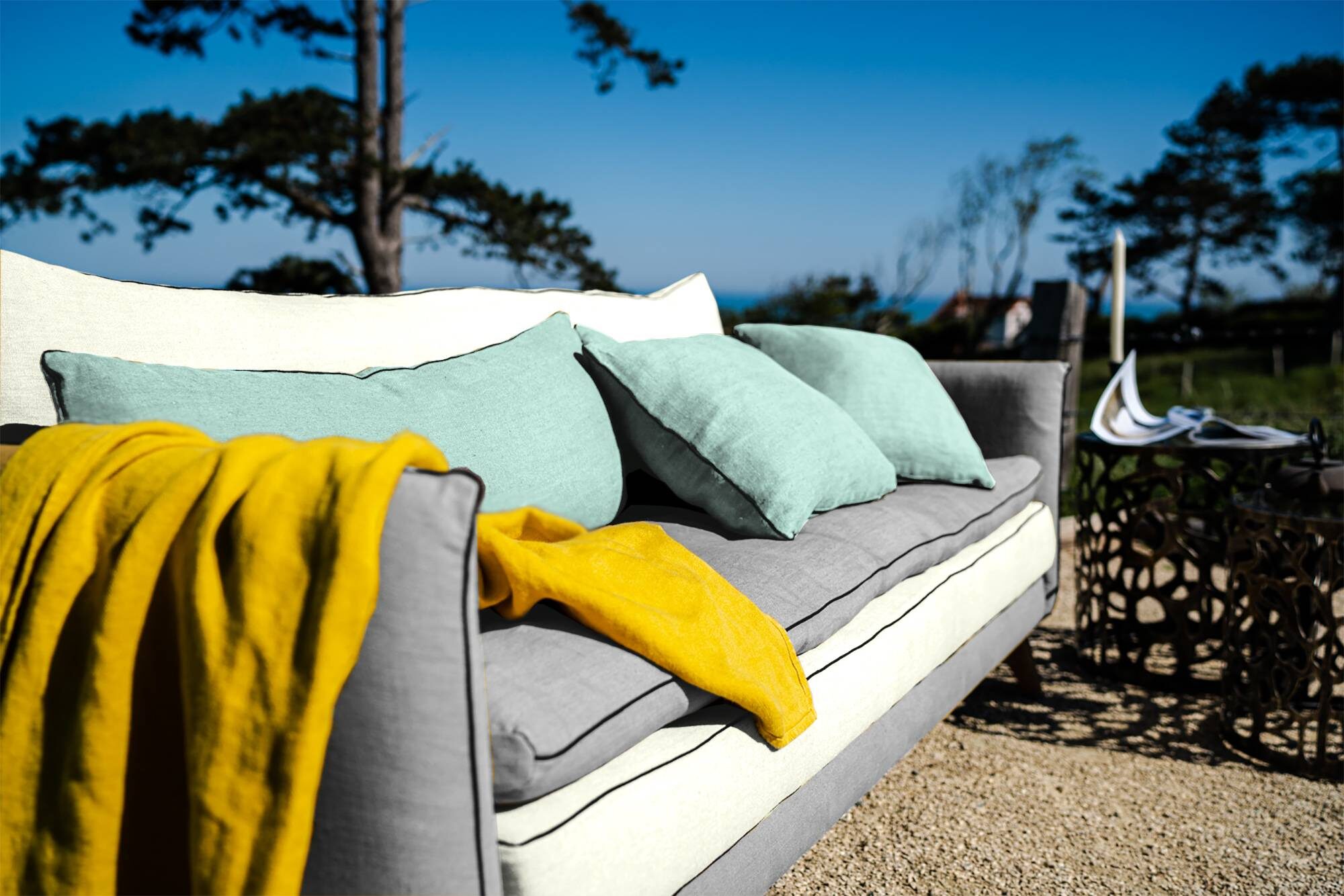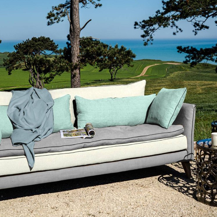Le tissu de ce canapé est en 100% lin . Ce tissu est doux pour la peau et pour la nature : il est certifié Oeko-Tex et ne demande presque pas de ressources pour pousser ! Le lin lavé est aussi très résistant, antibactérien, hypoallergénique et thermorégulateur. C'est un tissu qui prend soin de vous.