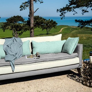 La douceur du vert sauge associé au gris souris et au lin naturel sera facile à associer avec le reste de vote salon.