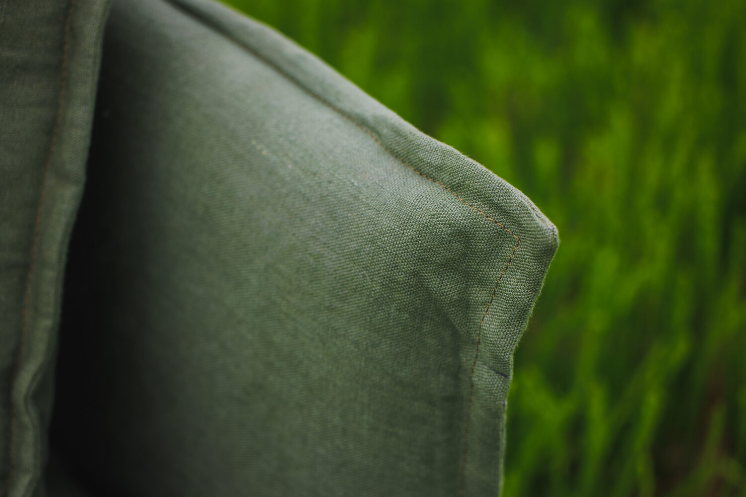 - Coussin assise : mousse haute résilience HR 37 kg/m3 enveloppée d’une couette de fibres creuses