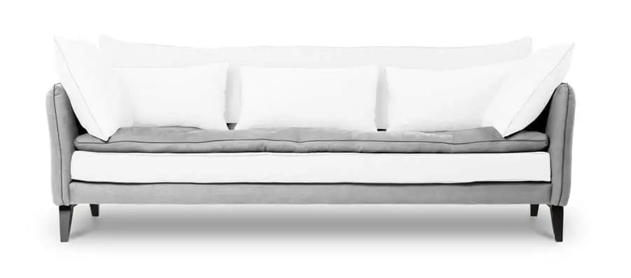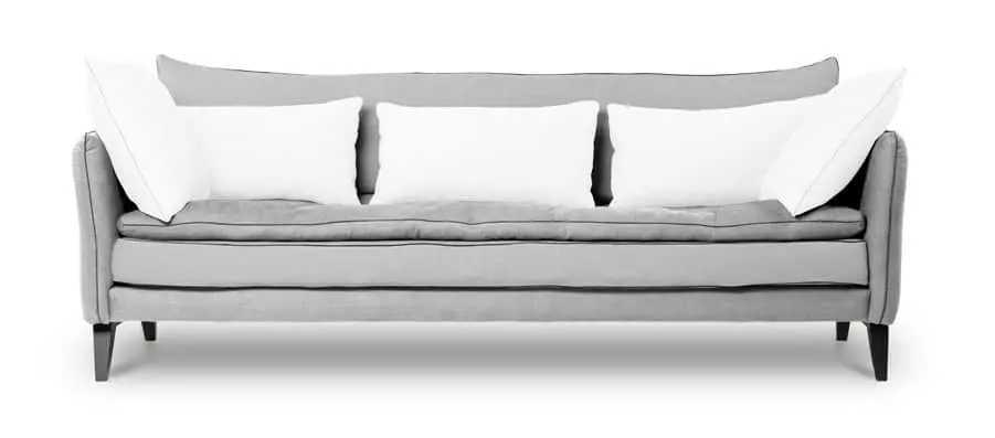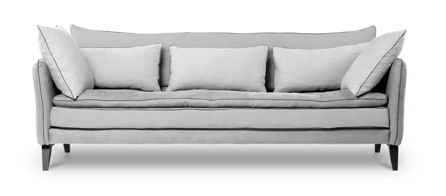 Notre canapé Aramis comprend des coussins cale-reins et des coussins décoratifs entièrement