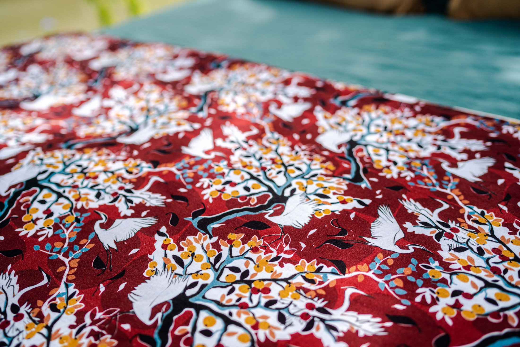 Pour accessoiriser mon canapé de coloris beige et me tenir au chaud pour cet hiver, je me suis offert l’édredon avec le motif verger. Sa couleur rouge est magnifique.