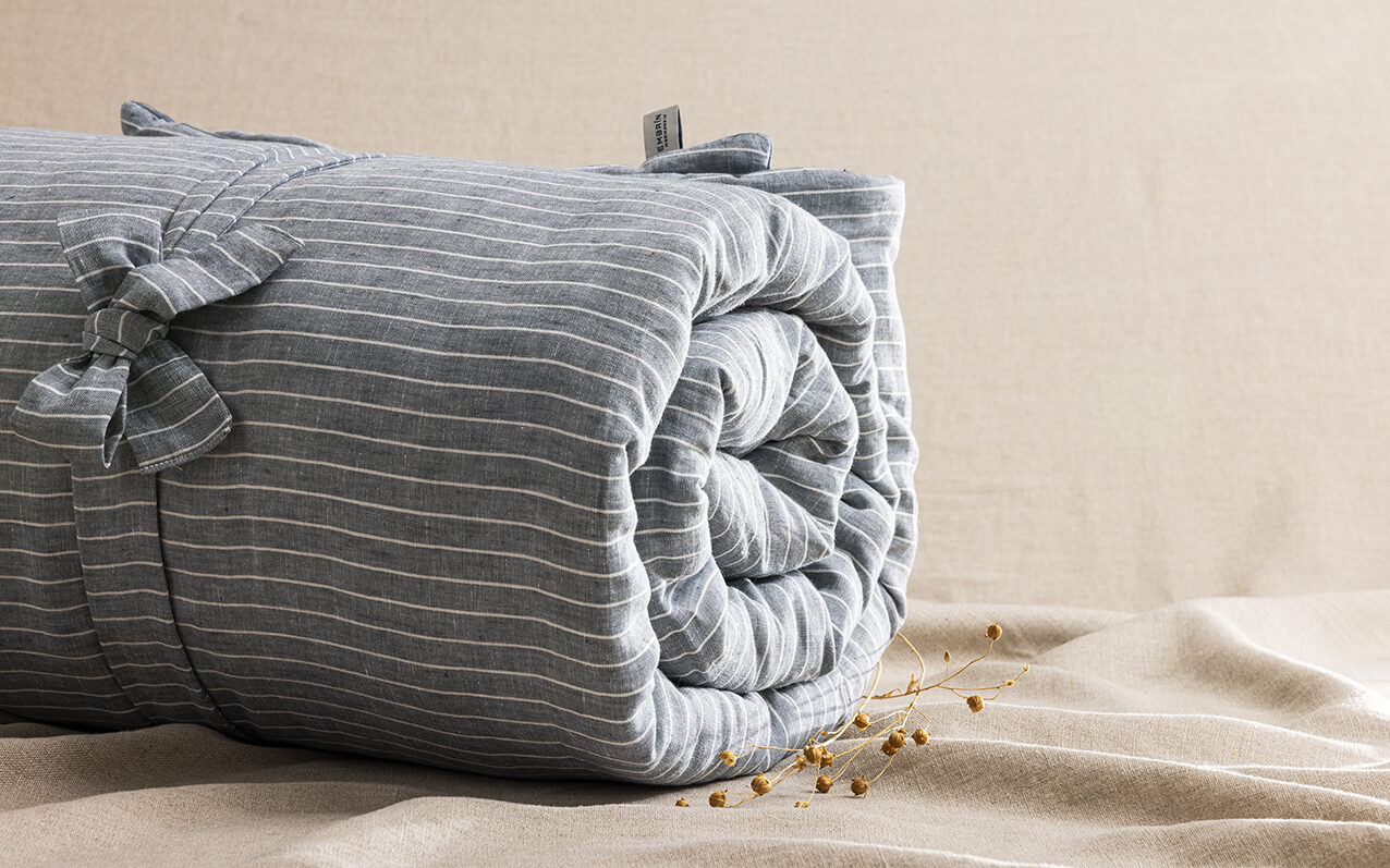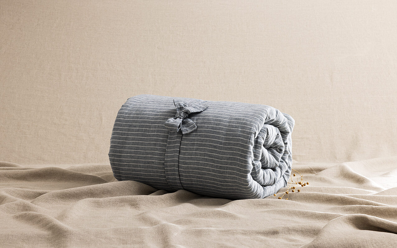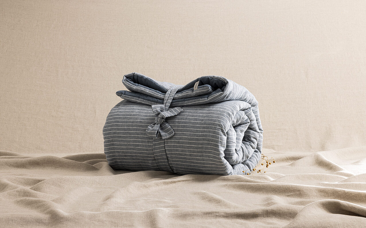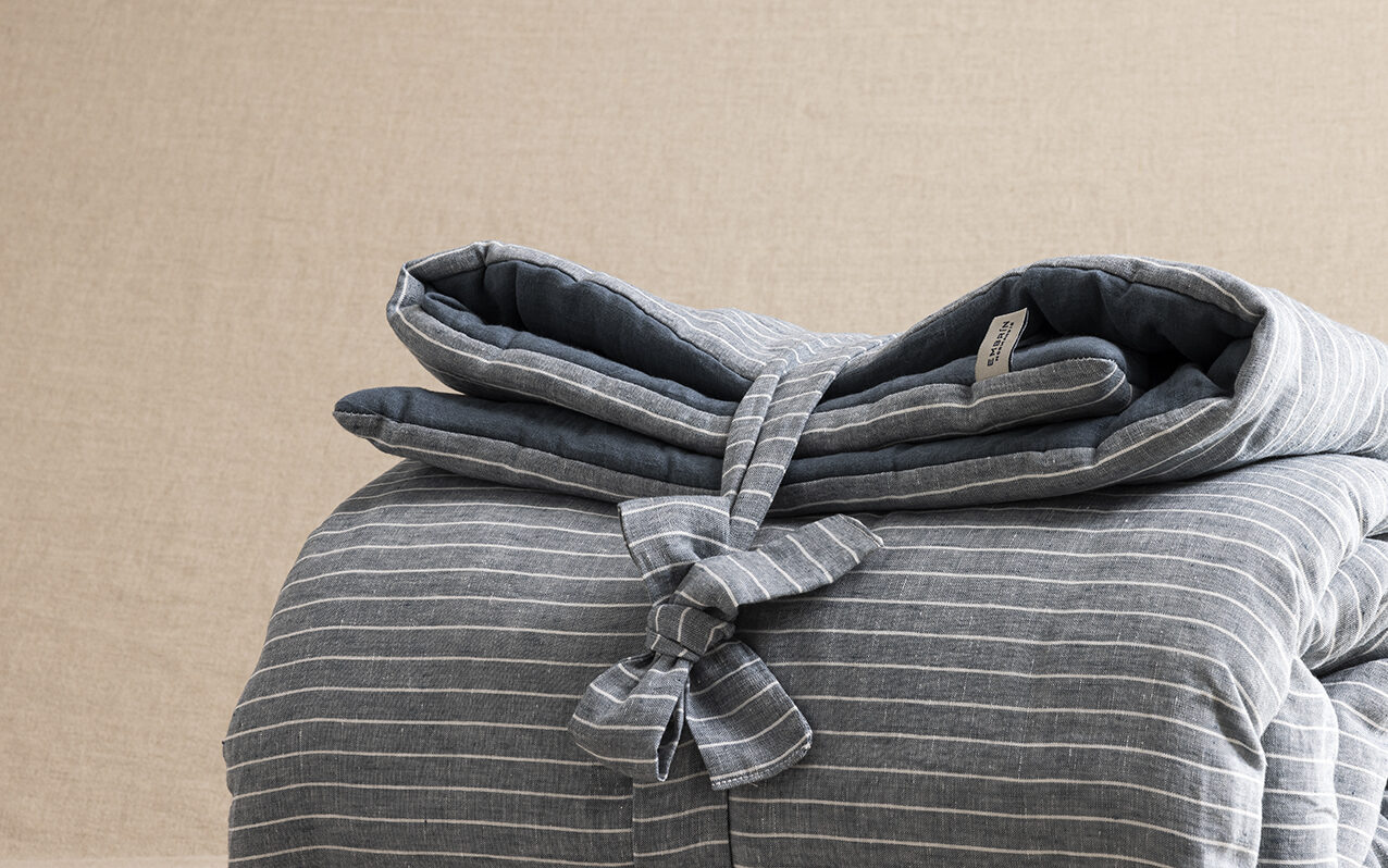 Découvrez l'élégance intemporelle de notre courtepointe en lin à rayures Ardoise.