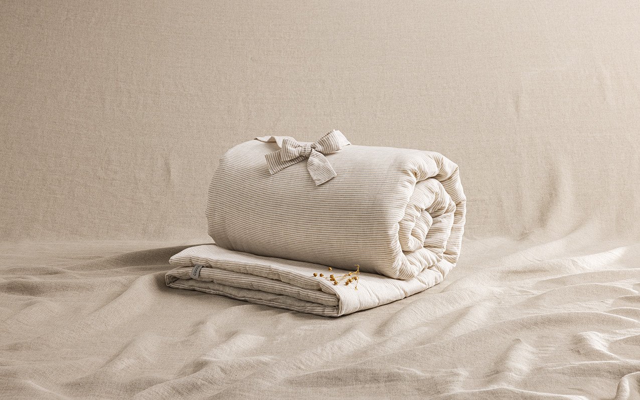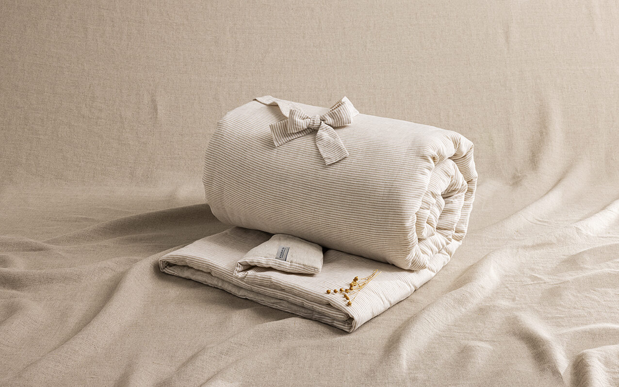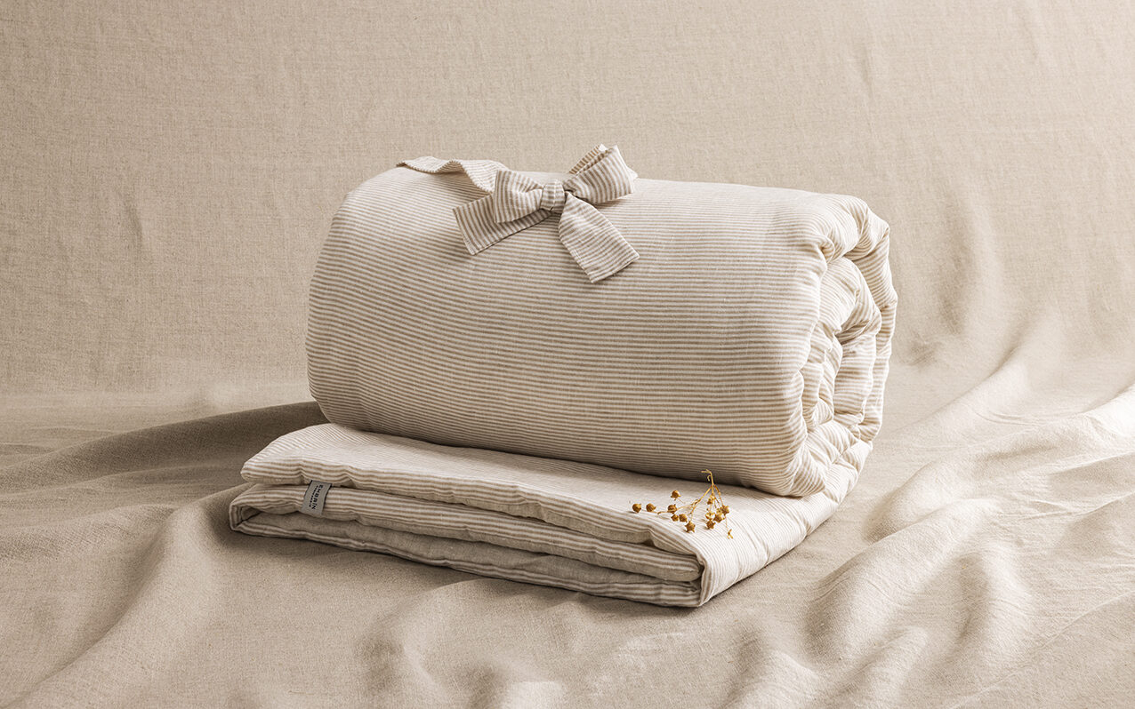 Pour un style harmonieux, découvrez nos housses de couette en lin et nos draps coordonnés avec des teintures unies ou à fines rayures.