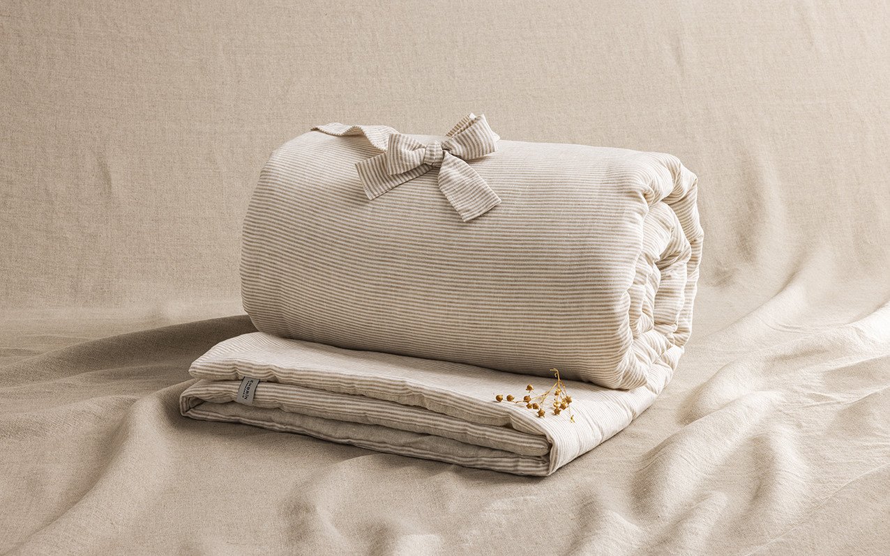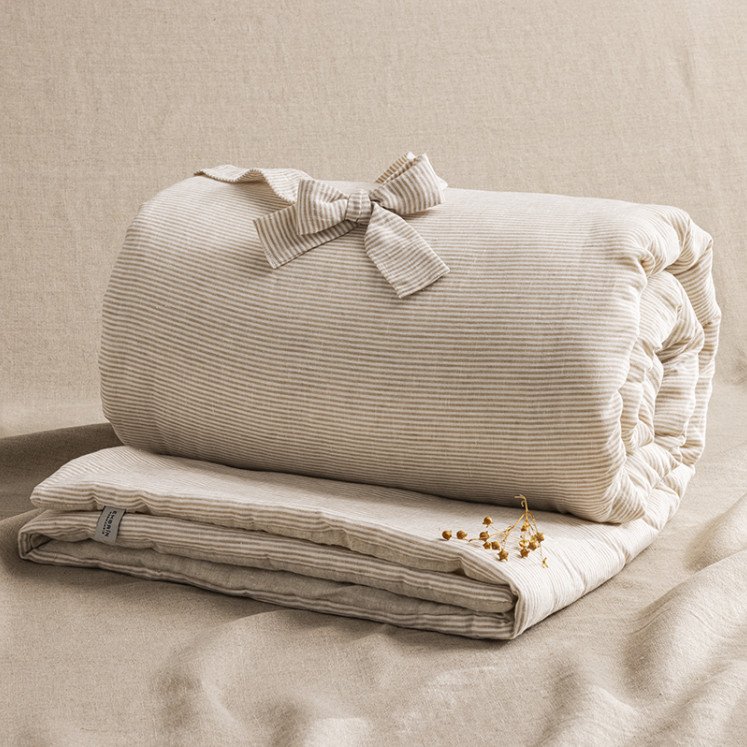Courtepointe en Lin Lavé Rayure Naturel