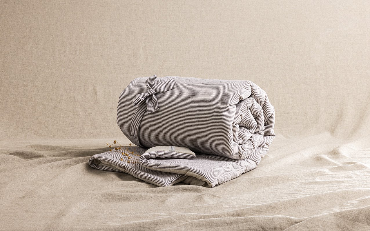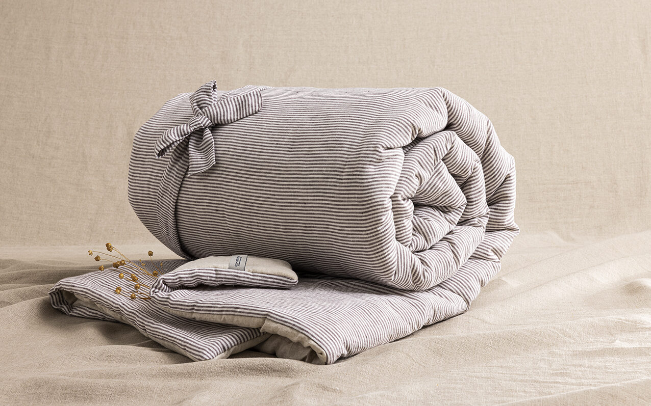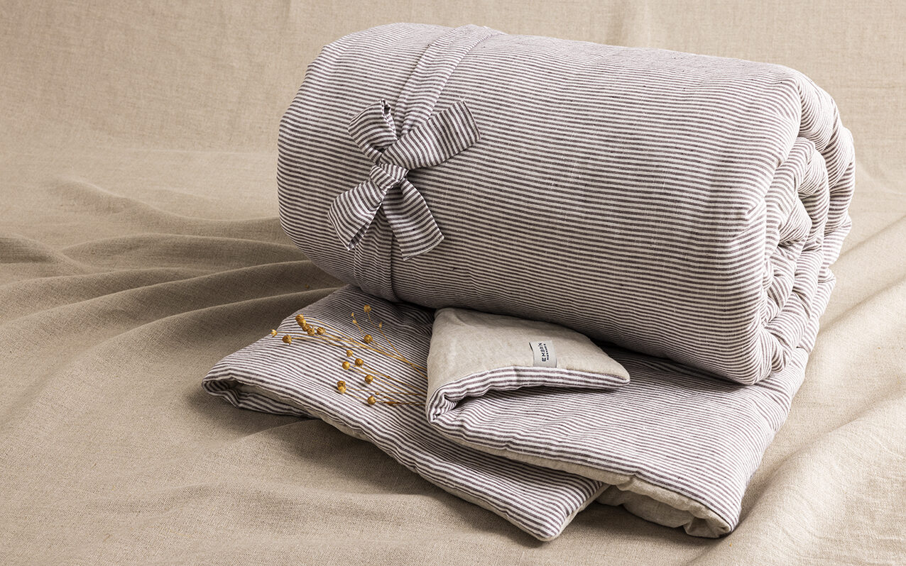 Une élégante courtepointe enrichie votre parure de lit. Pour une chambre harmonieuse, laissez-vous séduire par nos housses de couette en lin et nos draps assortis.