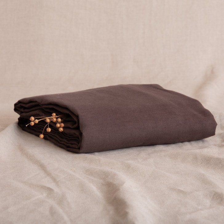 Drap Housse en lin lavé Châtaigne