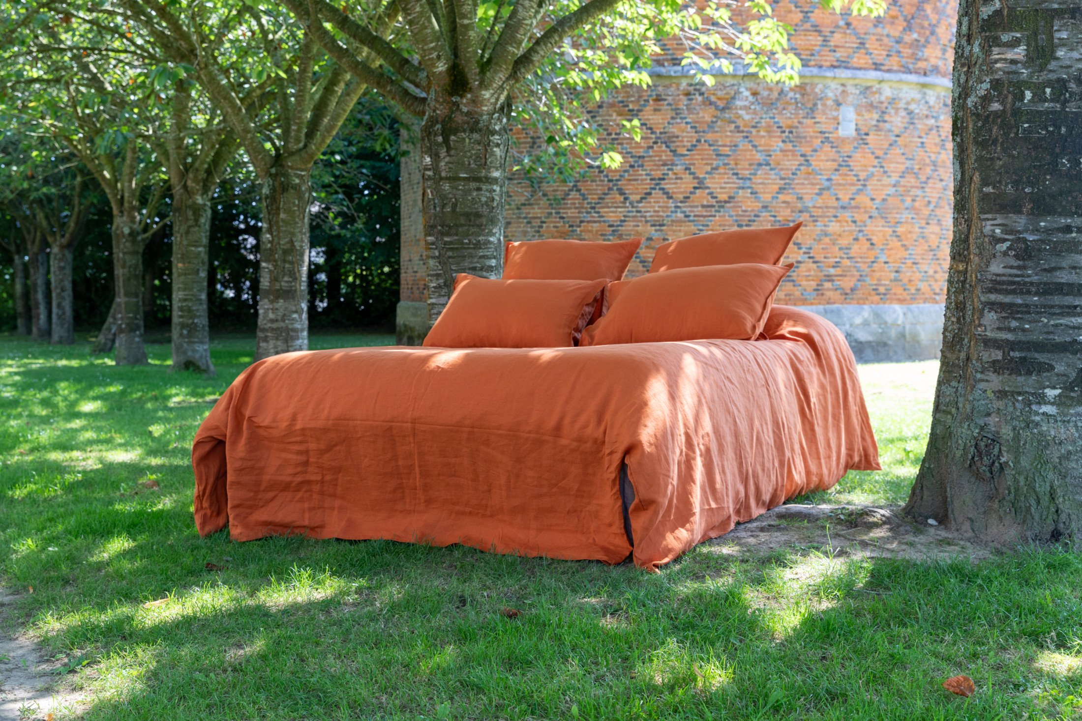 Ce ton chaleureux et intemporel crée une atmosphère conviviale et apaisante dans votre chambre, tout en apportant une touche de caractère. Le drap housse en lin lavé Tomette transforme votre lit en un espace de confort chaleureux et invite à la détente.
