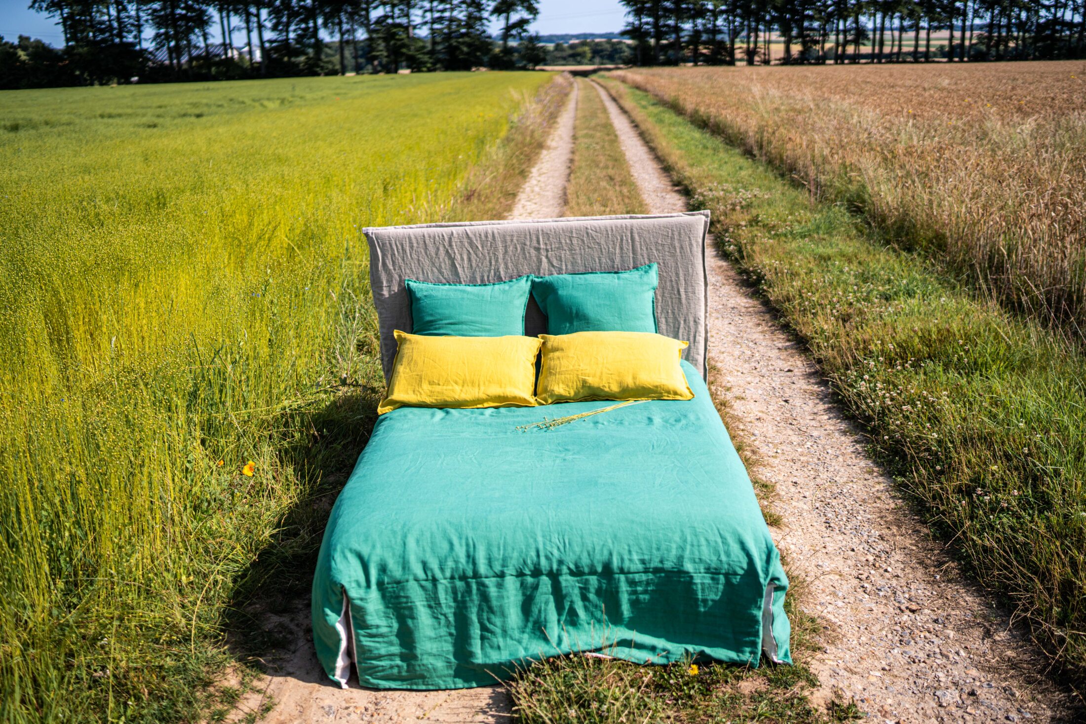 Pour associer notre drap housse en lin lavé sauge, partez sur une housse de couette en lin naturel qui renforcera le côté reposant de votre pièce. Autre accord de couleur, le blanc craie, qui assure un intérieur sans fausse note.