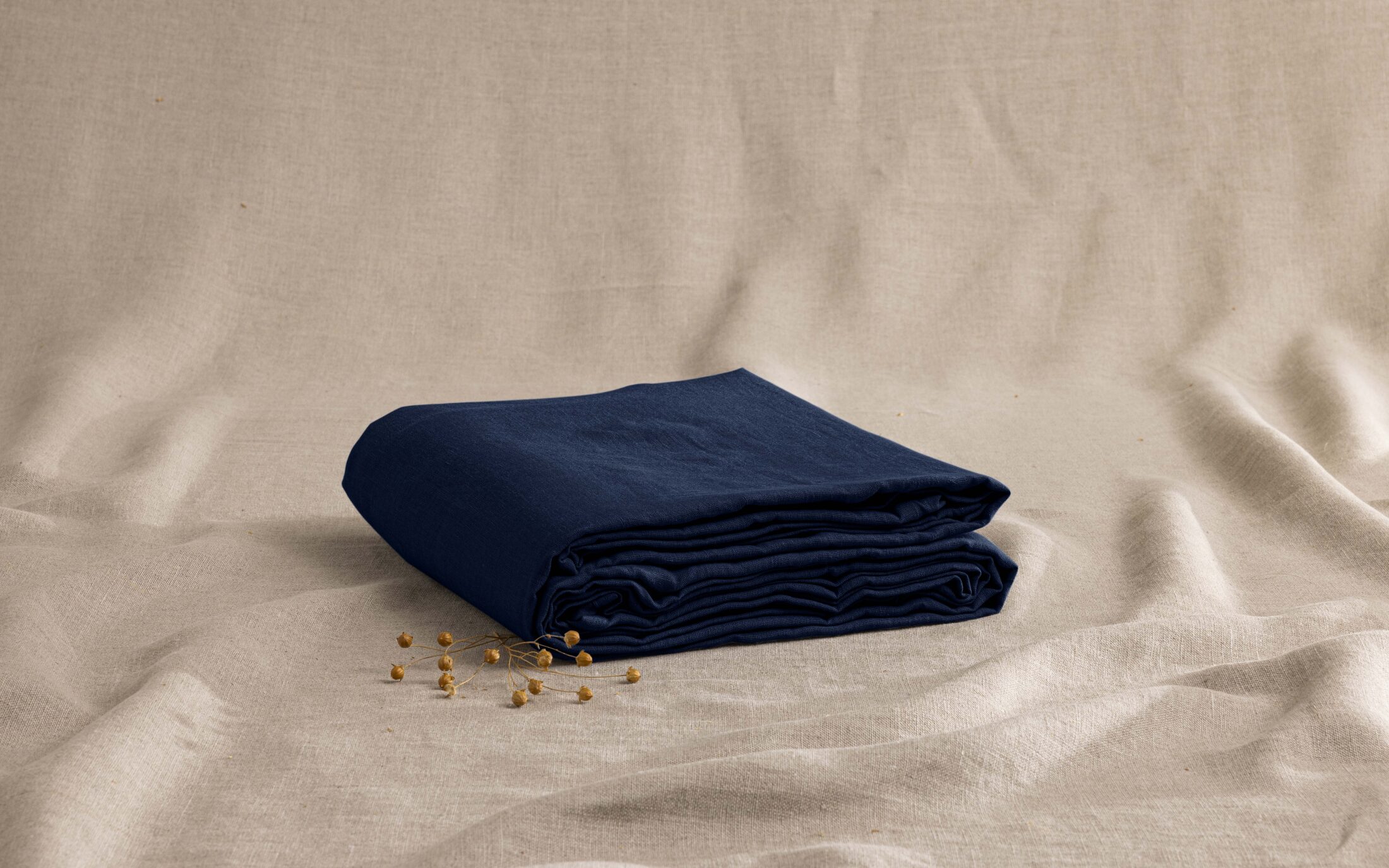 Apportez une touche de raffinement intemporel à votre chambre avec notre drap plat en lin lavé Bleu Nuit.