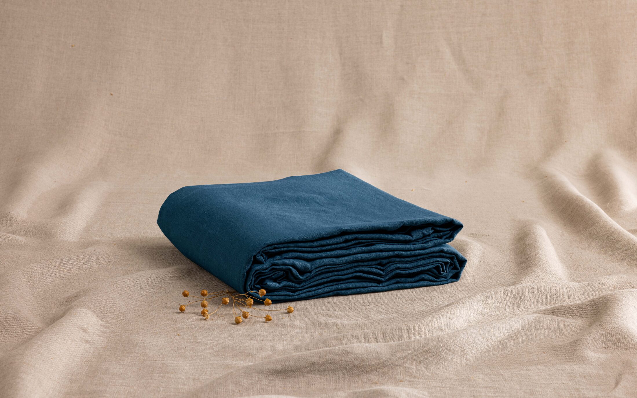 Optez pour ce drap plat en lin lavé Bleu Prusse pour un style classique chic.
