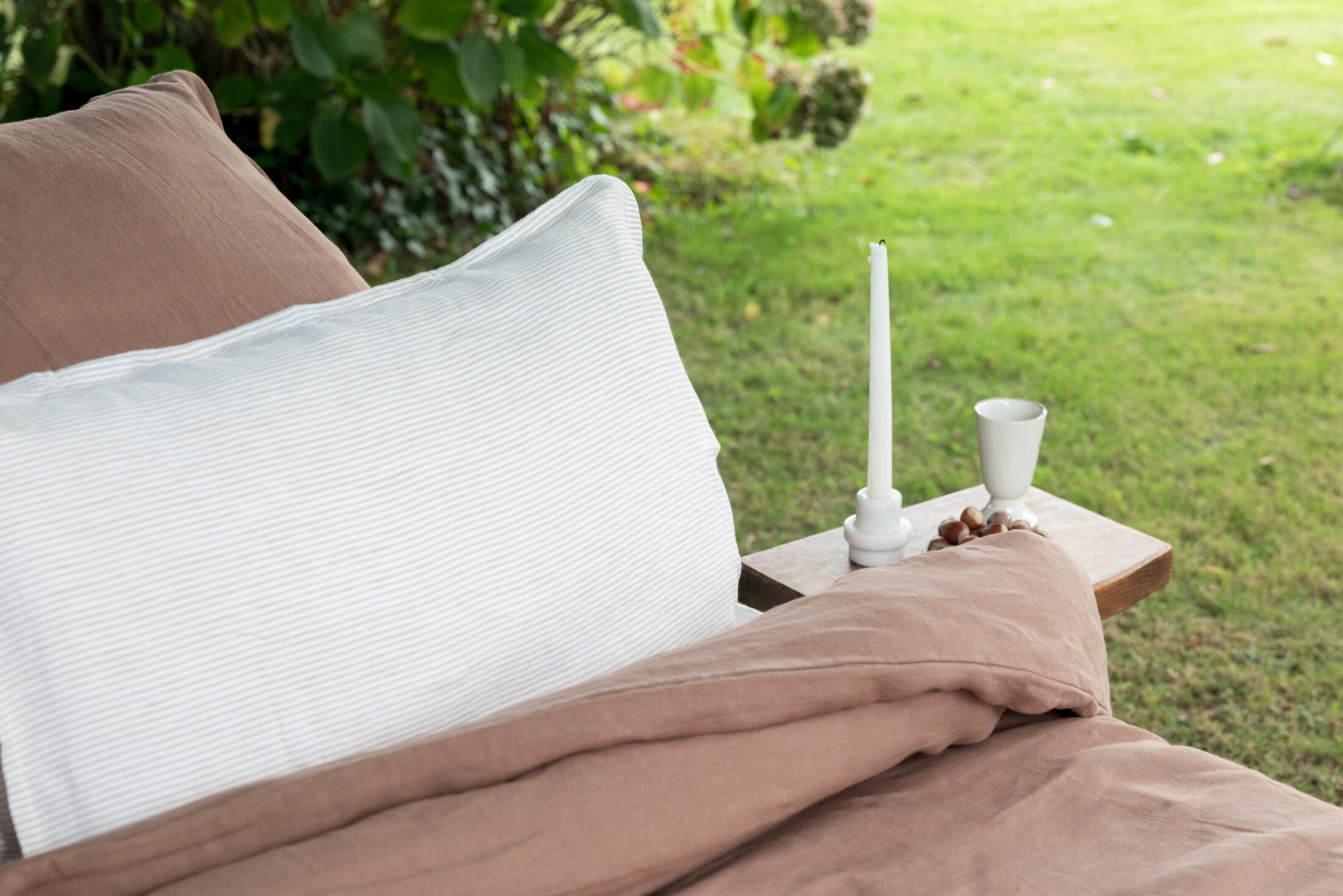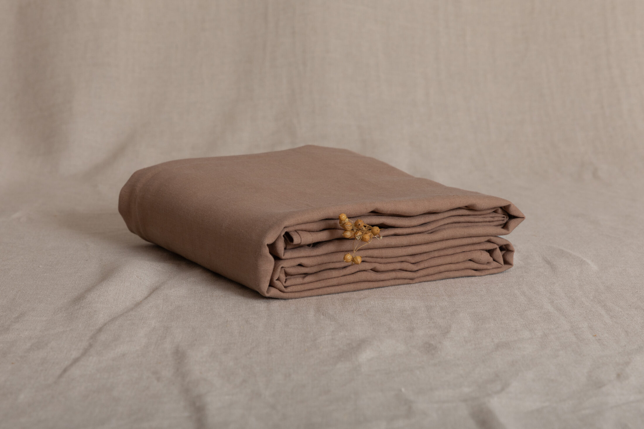 Glissé entre votre housse de couette et votre drap housse, notre drap plat en lin lavé noisette apporte une touche élégante à votre parure de lit.