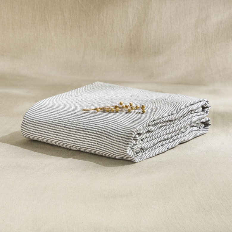 Drap Plat en Lin Lavé Rayure Silex