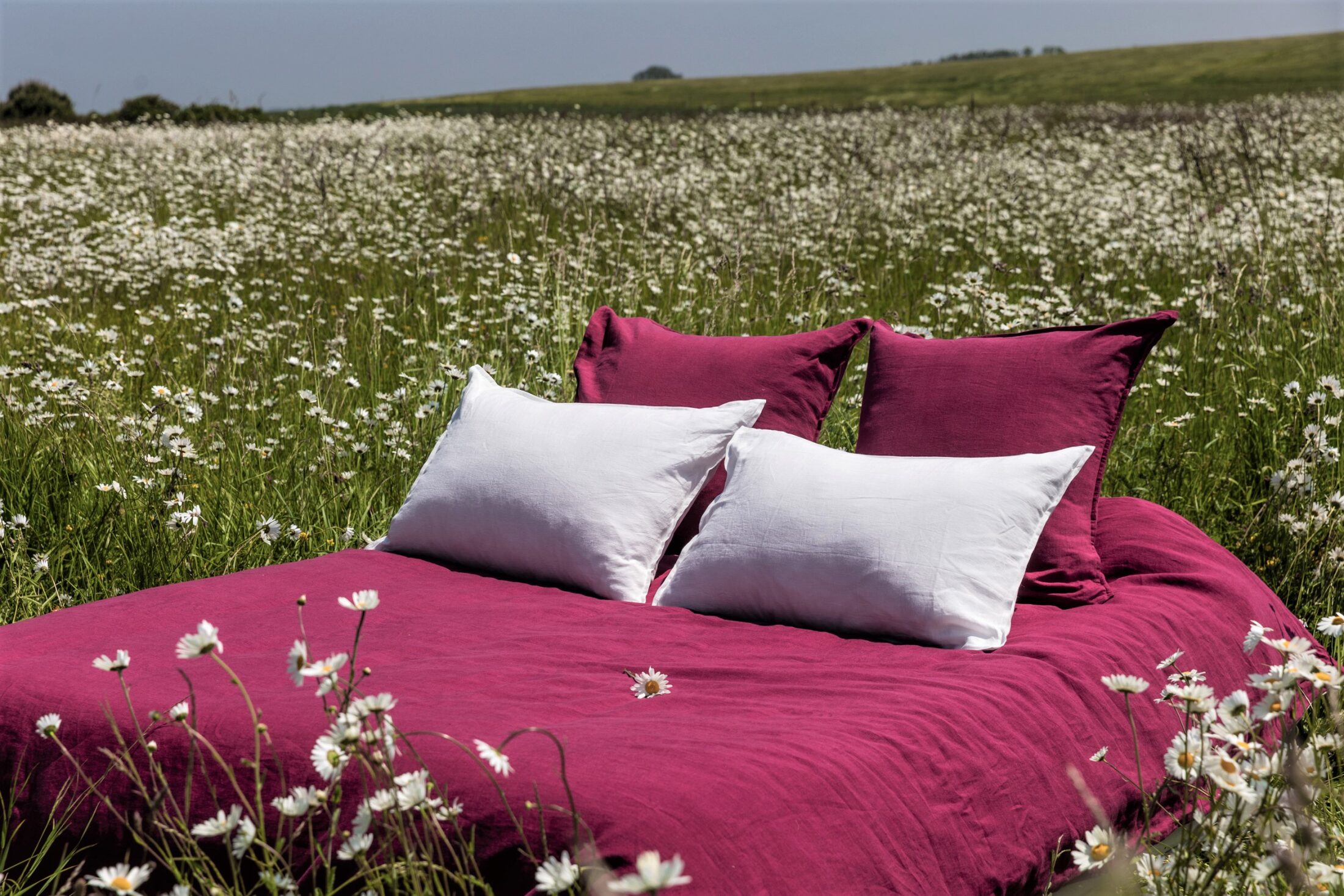 Ambiance chaude et cocooning avec notre drap plat en lin lavé Rose Bruyère. Une teinte intense qui fait référence aux jardins fleuris.