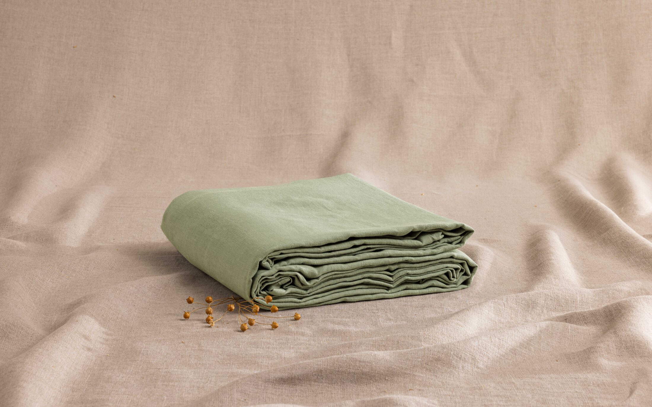 Drap Plat en Lin Lavé Vert Tilleul