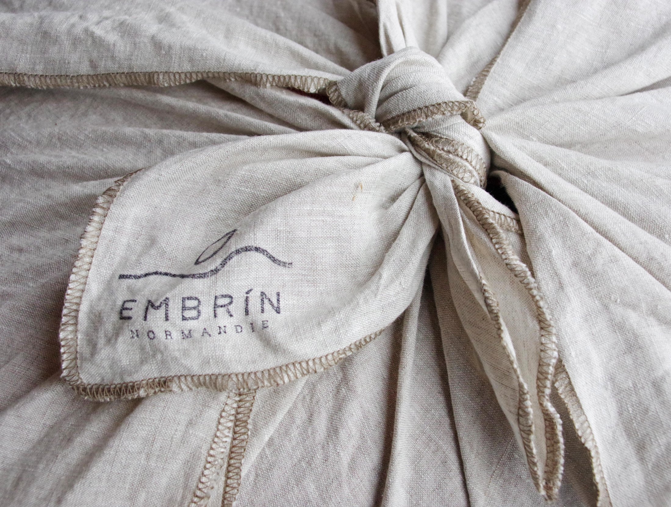 Embrín s’engage dans la continuité de cette tradition, devenue un art au Japon pour valoriser ses matières et ses pièces en vous proposant des emballages cadeaux confectionés dans nos ateliers à partir de nos chutes de lin. Ainsi nous évitons le gaspillage. Un choix pratique qui vous permettra de réutiliser cet ‘origami de tissu’ à votre guise.