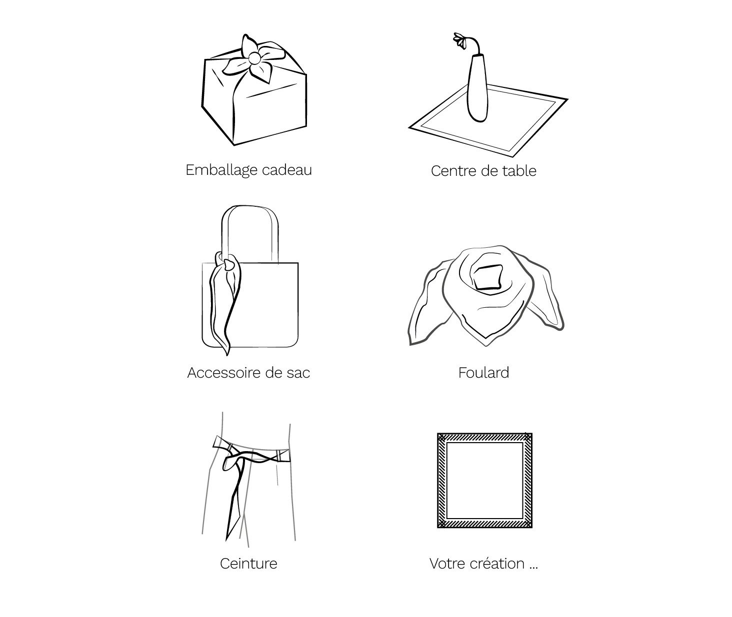Issu d’une tradition Japonaise, le Furoshiki est une technique de pliage et de nouage du tissu. A l’origine, c’est un emballage conçu pour protéger, ranger et transporter des objets précieux (bijoux, accessoires...).