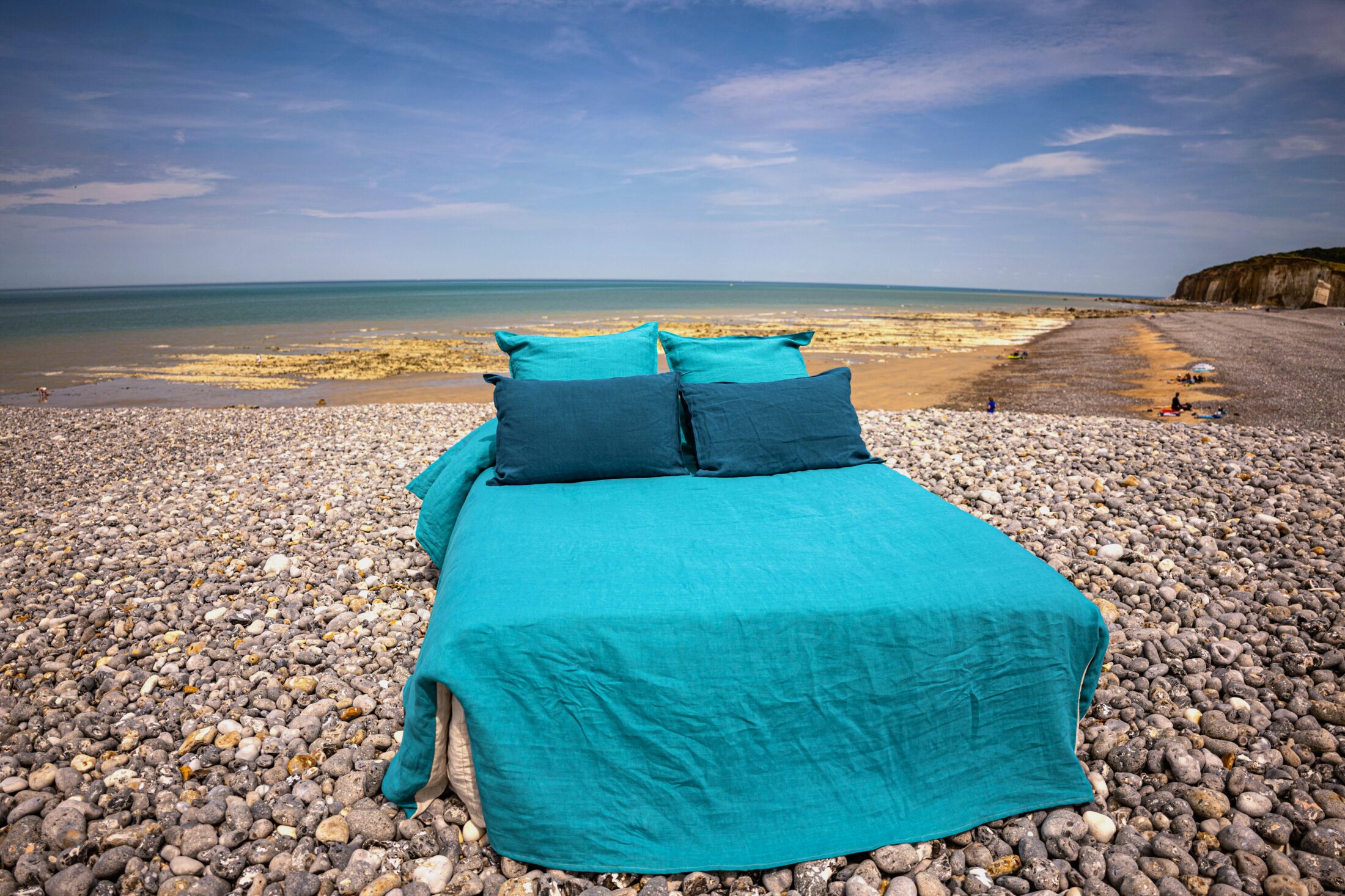 Le bleu de ces draps en lin est magnifique et apporte une belle touche de fraîcheur à ma chambre.