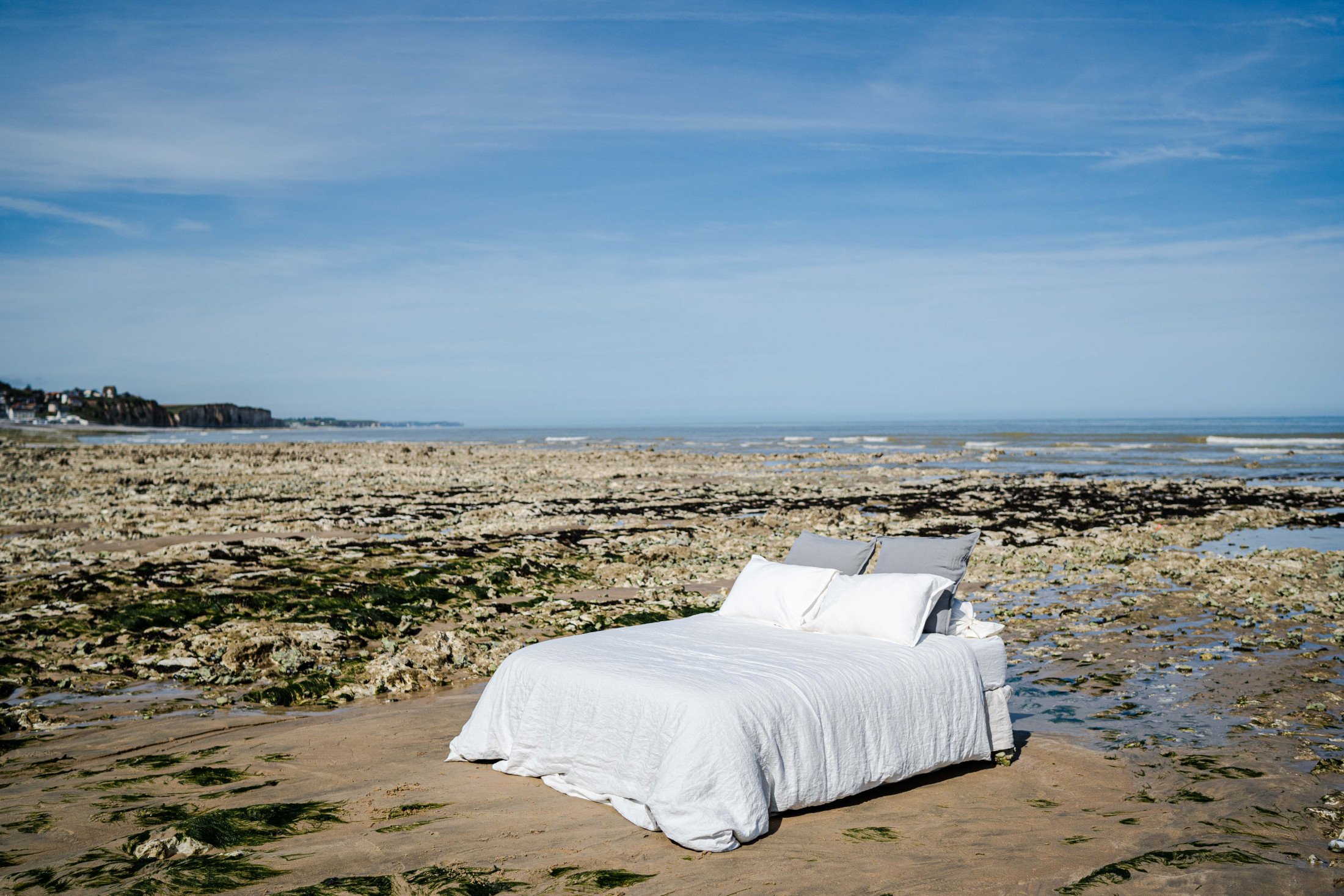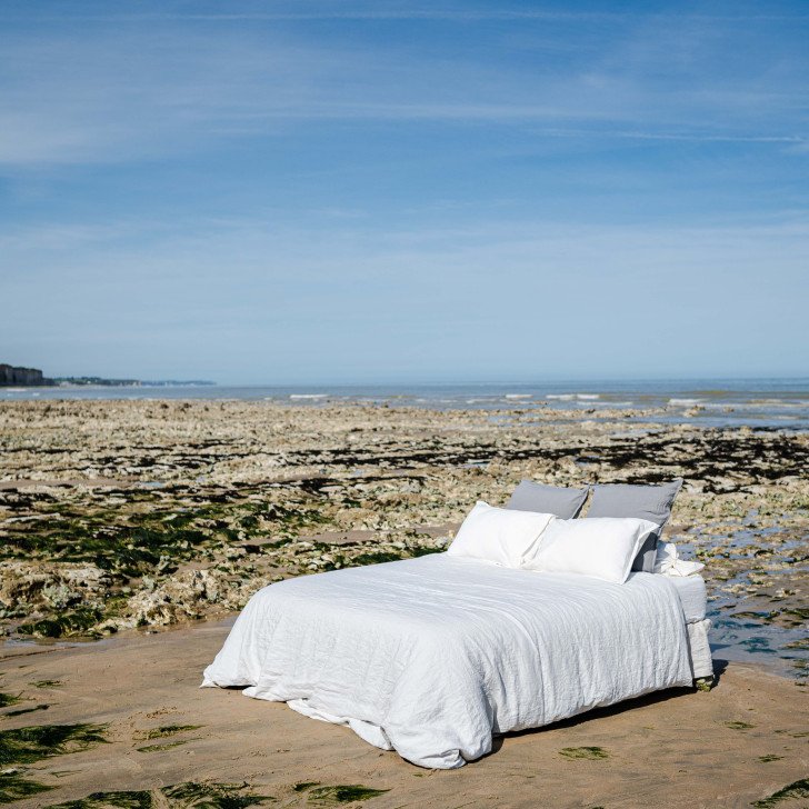 Évoquant la pureté des falaises blanches de la Côte d’Albâtre, notre housse de couette en lin lavé coloris Craie illumine la chambre d’une élégance sobre et intemporelle.