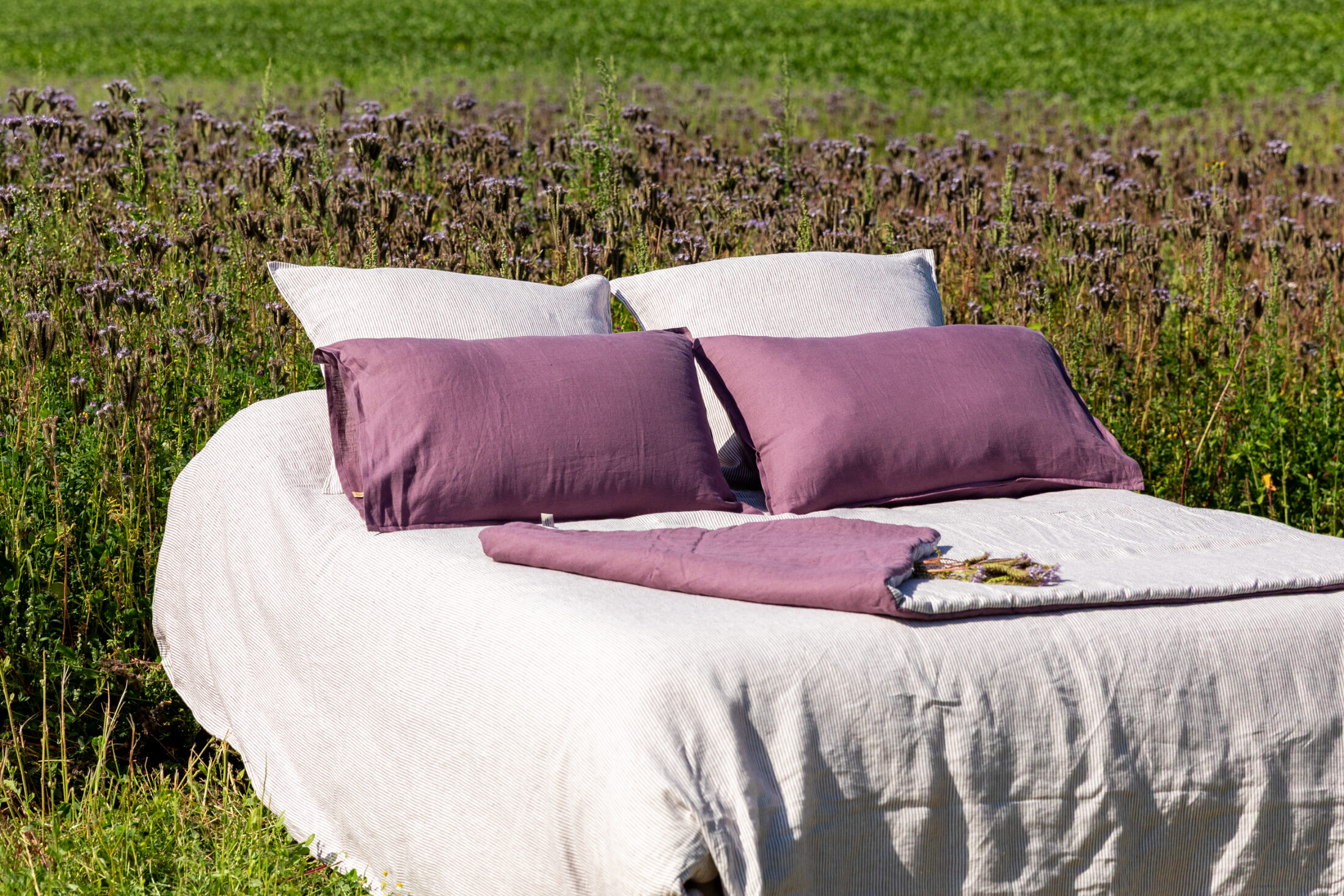 La housse de couette en lin avec des rayures prune est superbe. Elle a transformé l'ambiance de ma chambre, la rendant plus accueillante et chaleureuse. La qualité du lin lavé est impressionnante, offrant à la fois douceur et durabilité. J'apprécie particulièrement la fermeture à boutons qui est à la fois pratique et esthétique. Un excellent achat pour ceux qui veulent conjuguer style et confort.