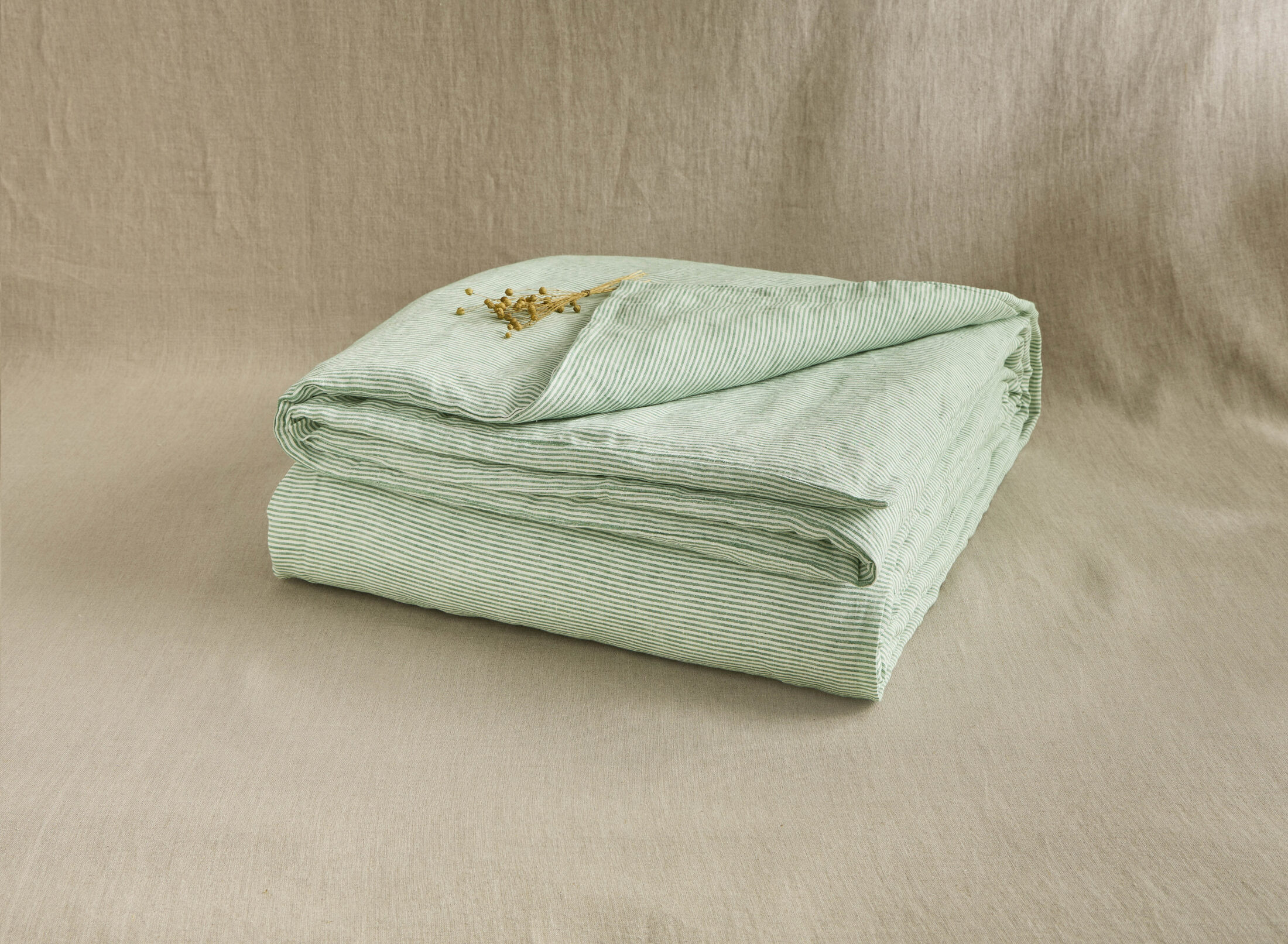 Cette housse de couette 100% lin fabriquée en France, de coloris rayé vert sauge, incarne un mariage parfait entre élégance naturelle et qualité artisanale.