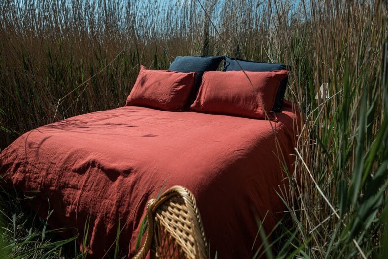 Housse de Couette en Lin Lavé Rouge Figue