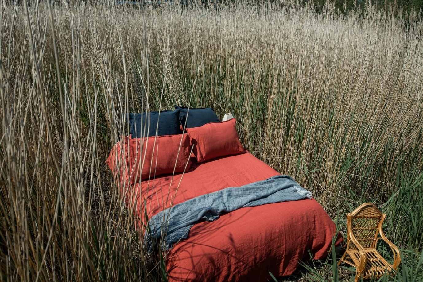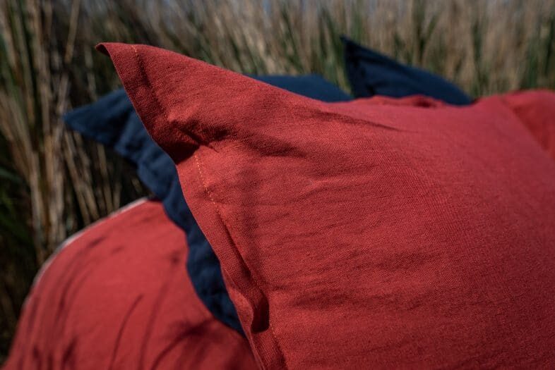 Cette housse en lin rouge figue est incroyablement belle et riche en couleur.