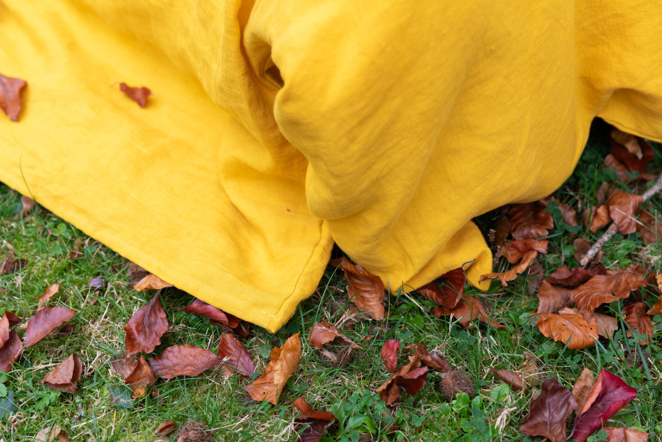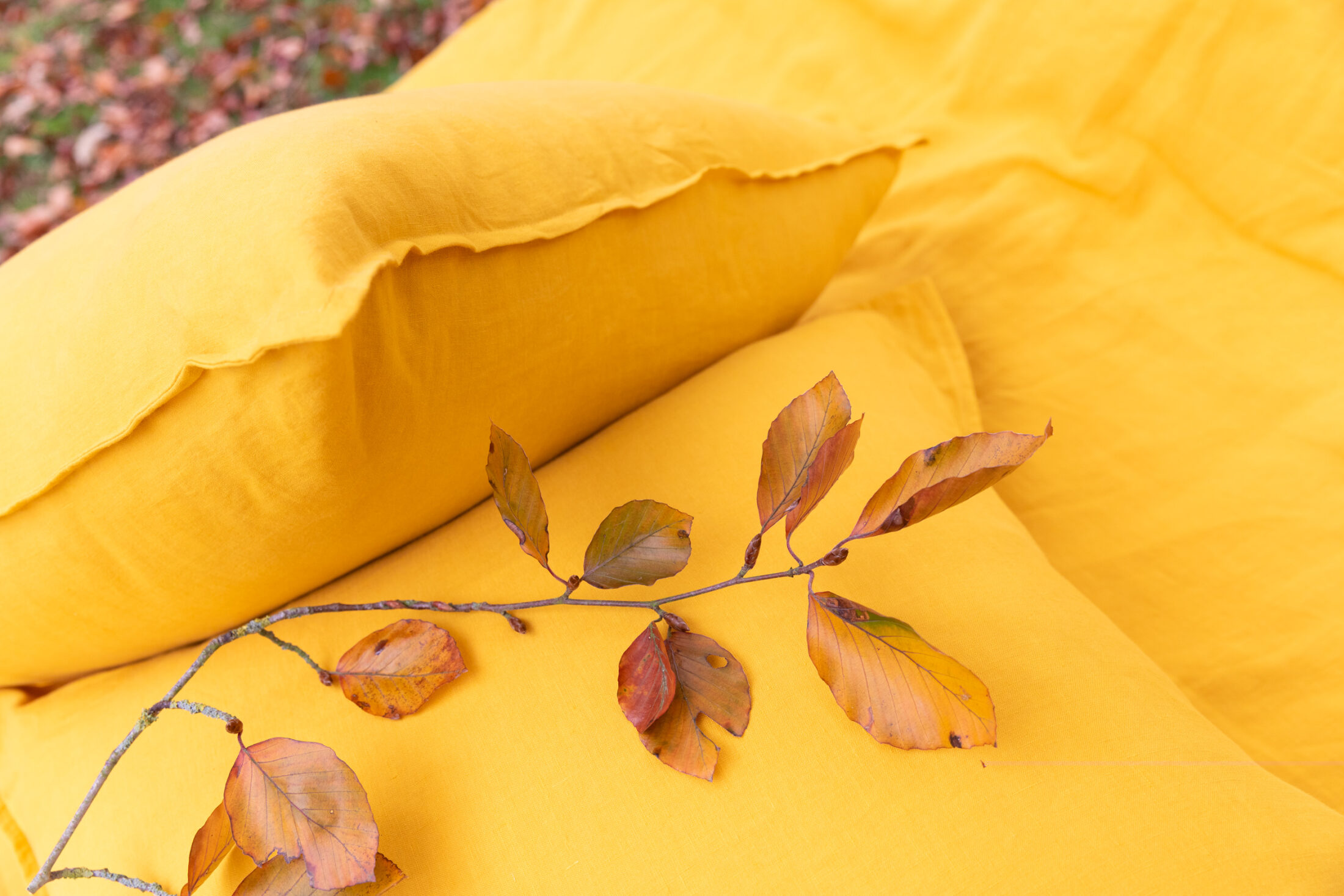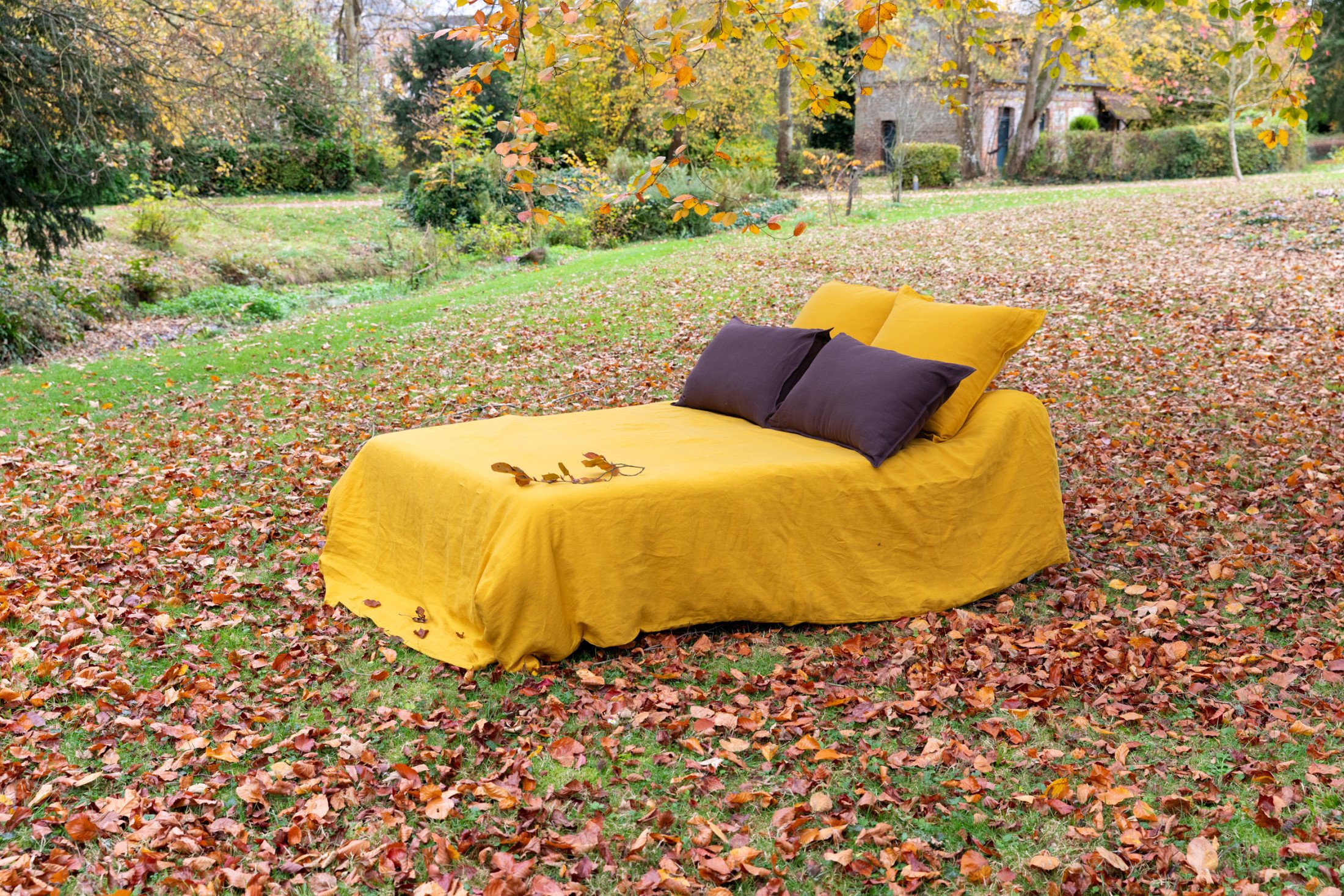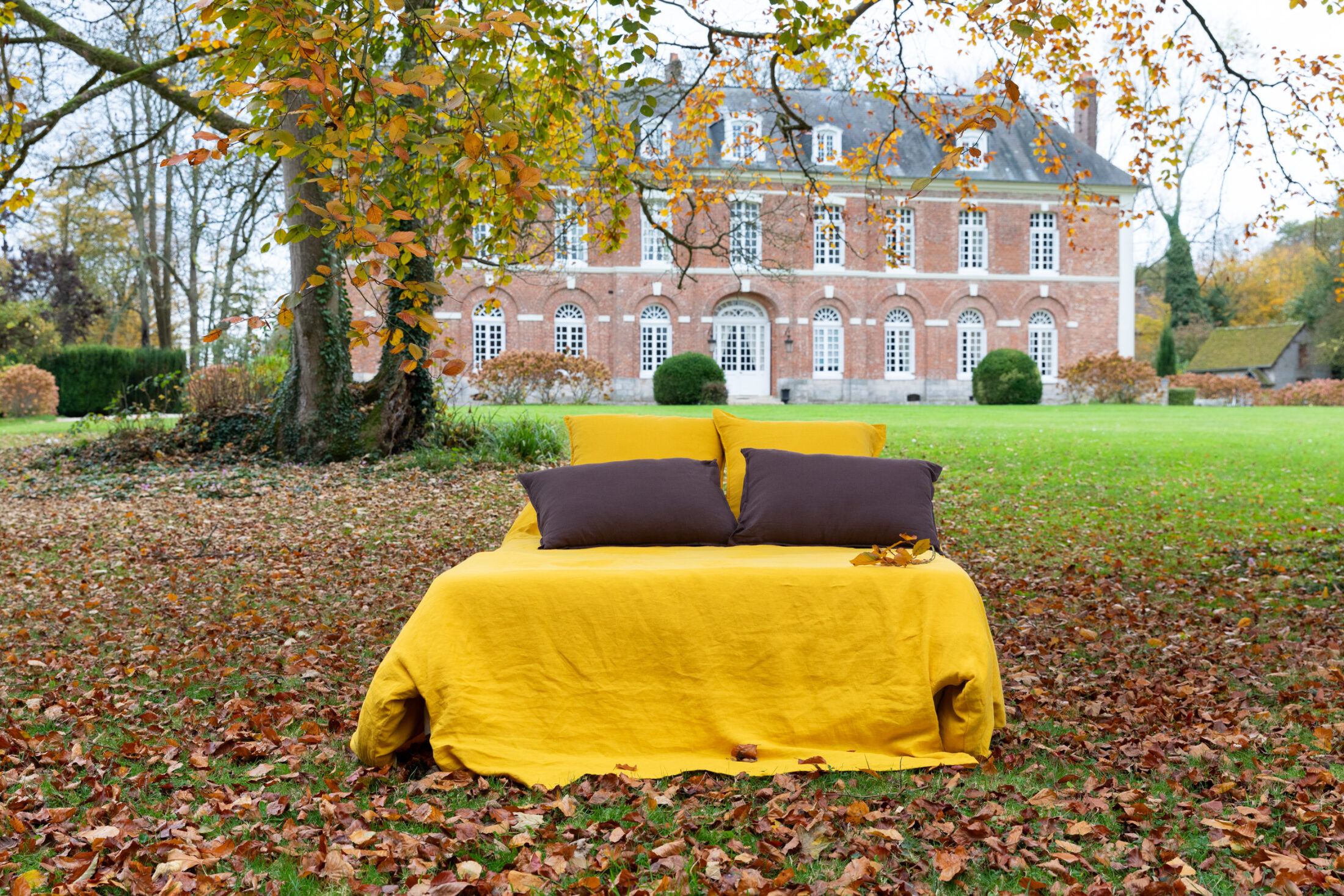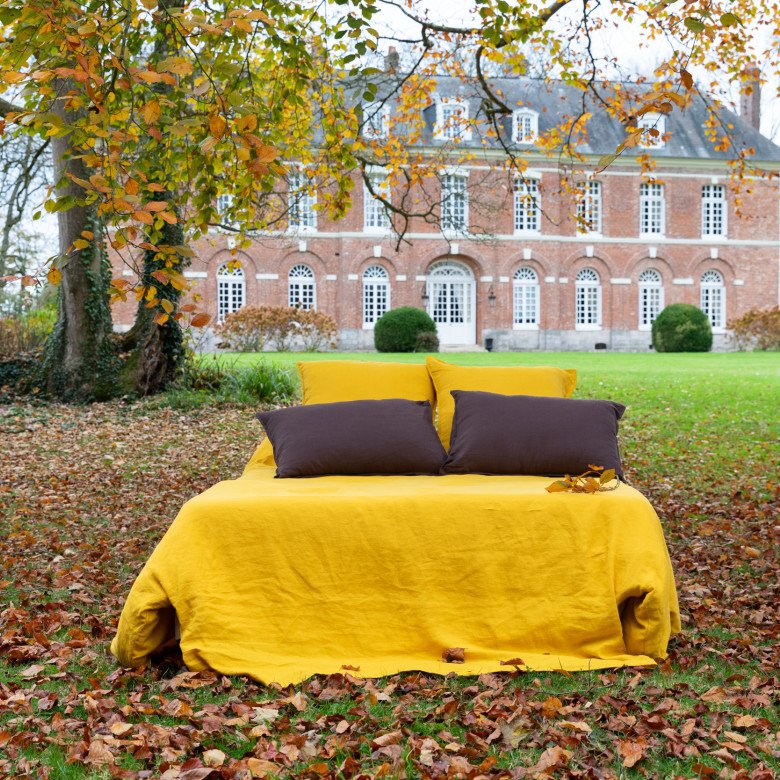 La housse de couette en lin safran est parfaitement sublime, elle réchauffe l'atmosphère de la pièce.