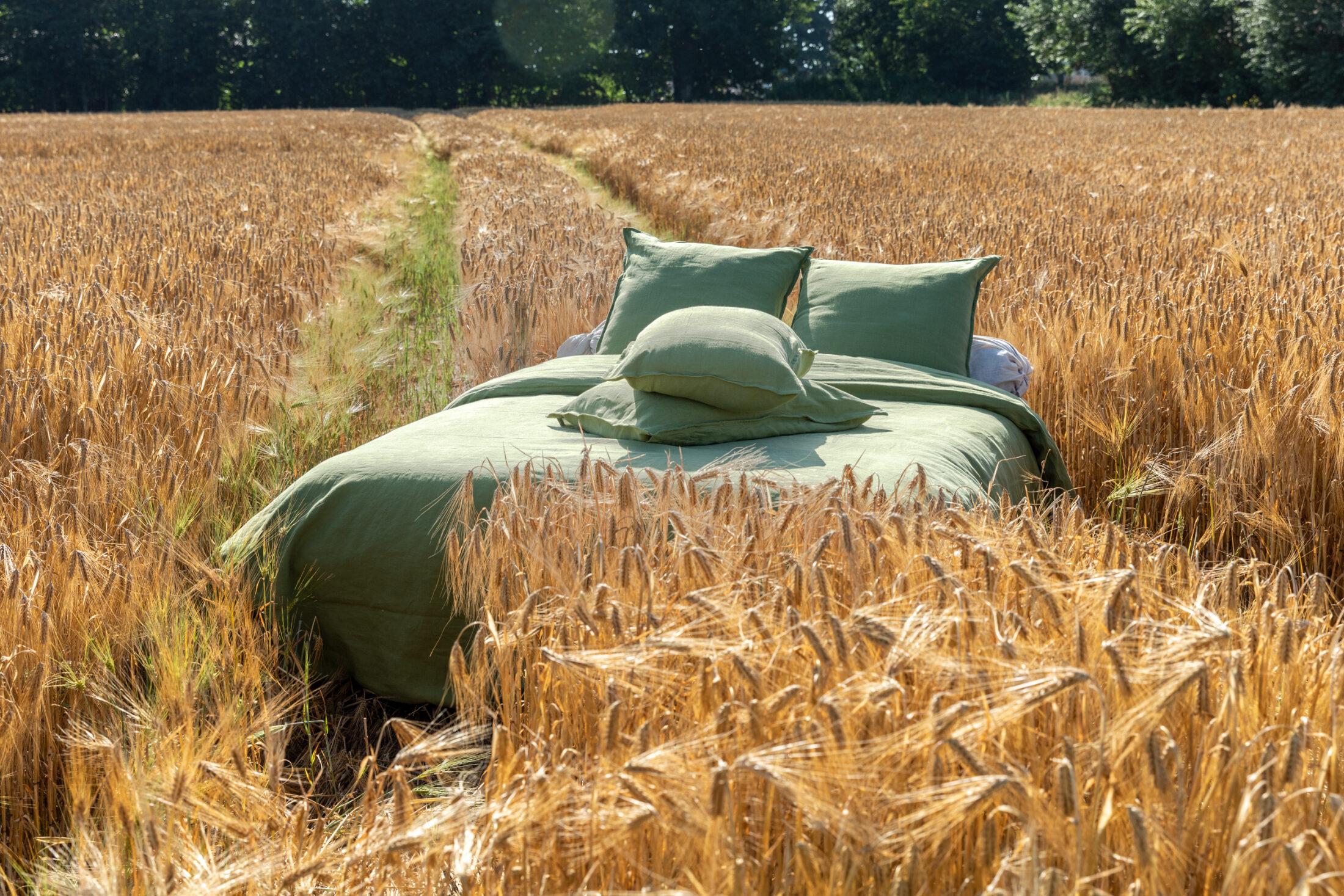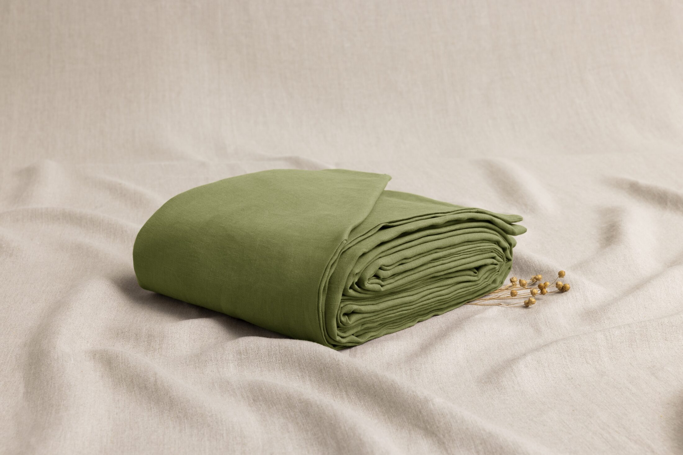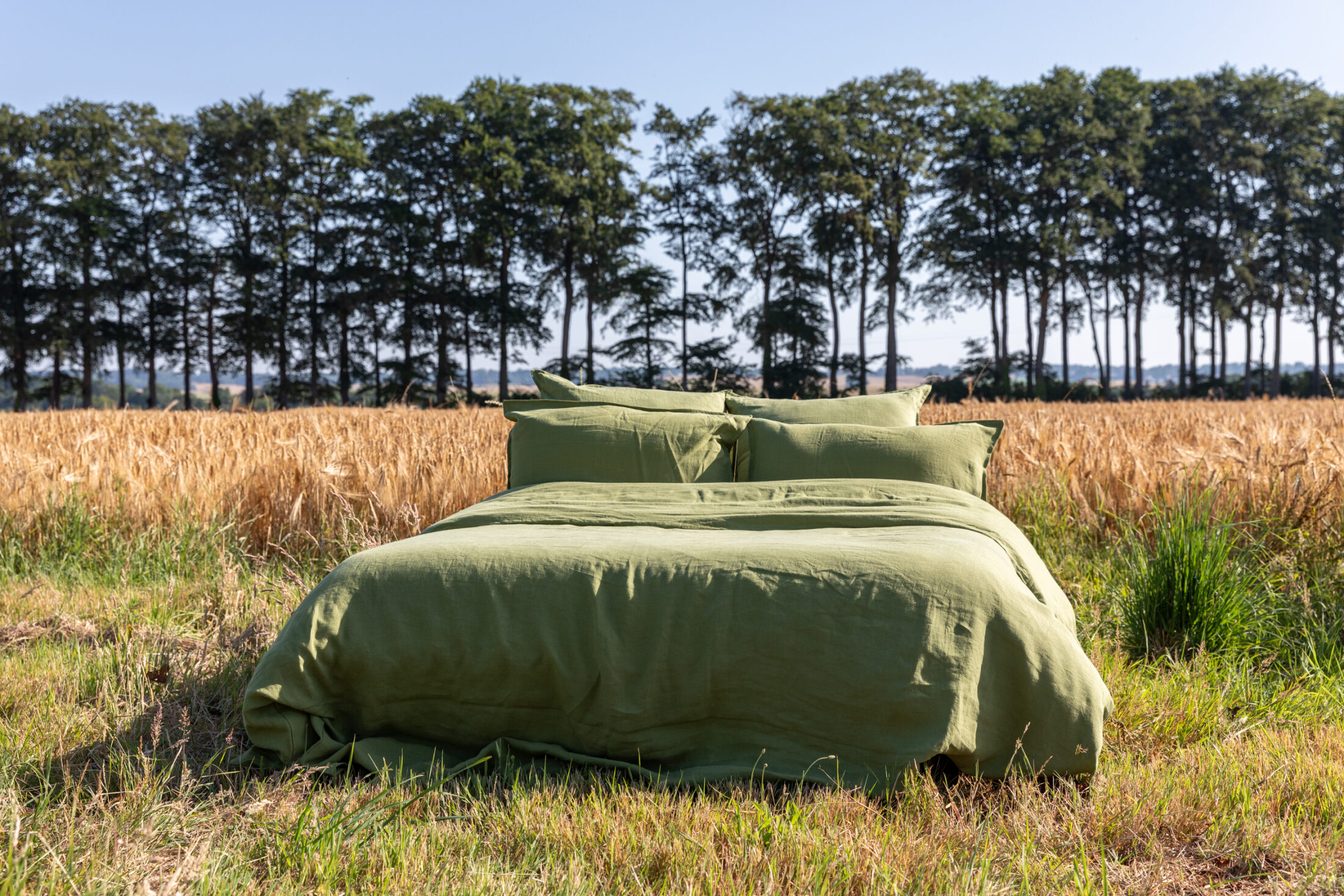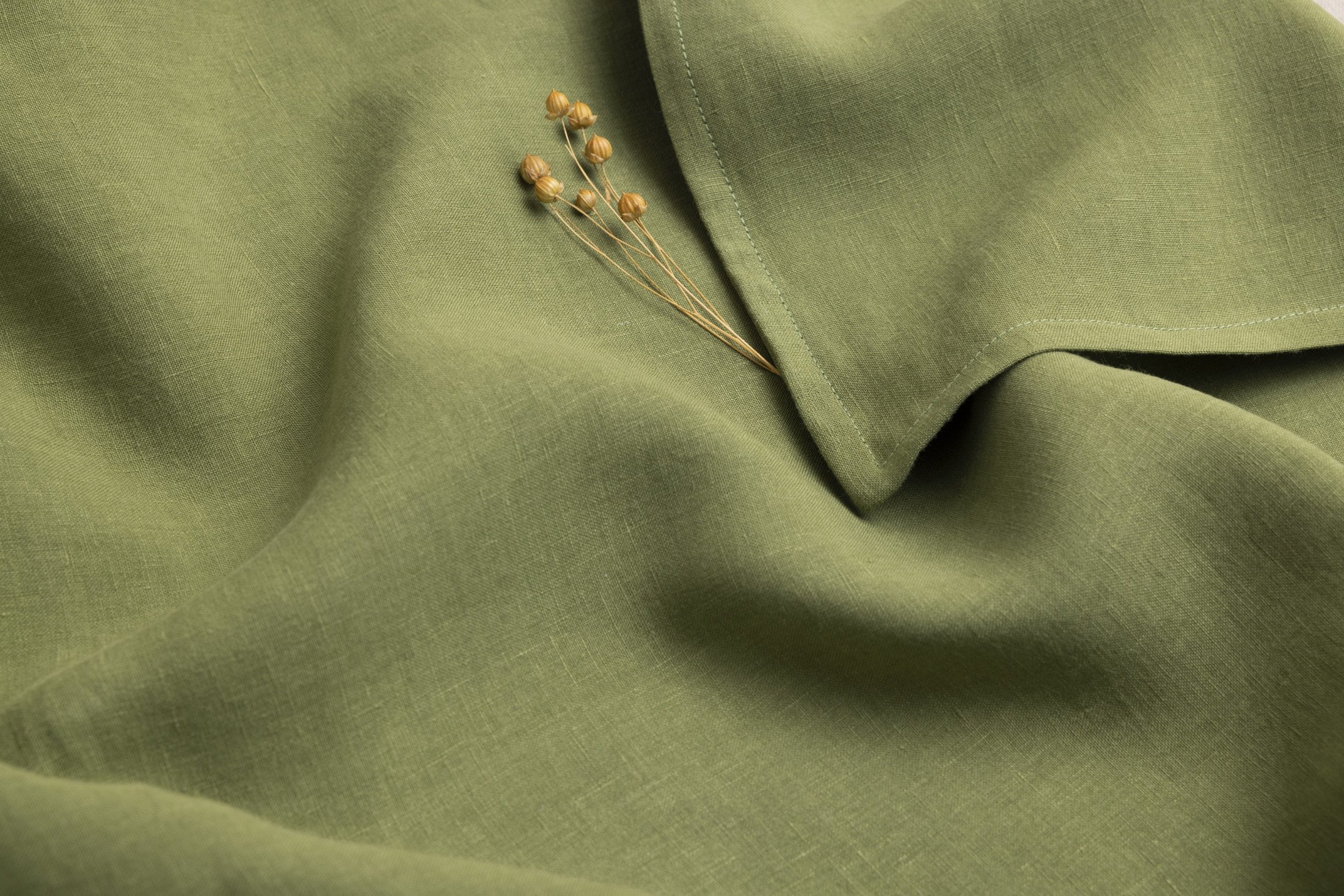Offrez une touche de fraîcheur et d’élégance à votre chambre à coucher avec la housse de couette en lin lavé de couleur Vert Olive.