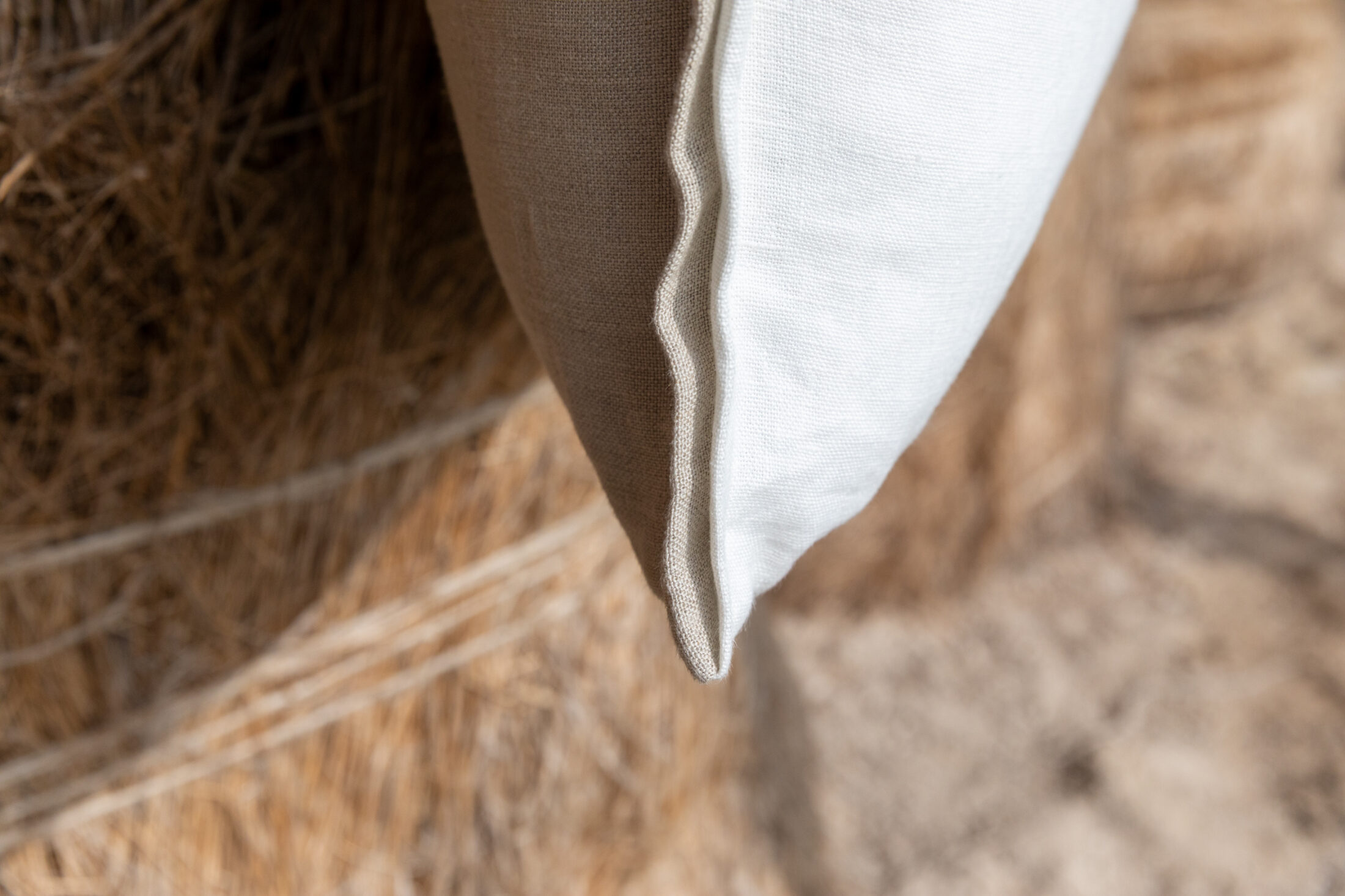 Le tissu utilisé est cultivé en Normandie, notre région réputée pour la qualité exceptionnelle de son lin. Chaque housse de coussin est ensuite confectionnée avec soin dans notre atelier, valorisant un savoir-faire textile local et une fabrication attentive aux détails.