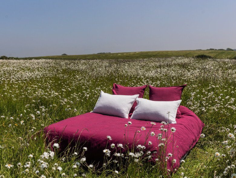 Avec son coloris rose bruyère, teinte à la fois intense et feutrée, notre parure de lit en lin lavé 100 % normand apporte une note chaleureuse et romantique à la décoration de votre chambre à coucher.