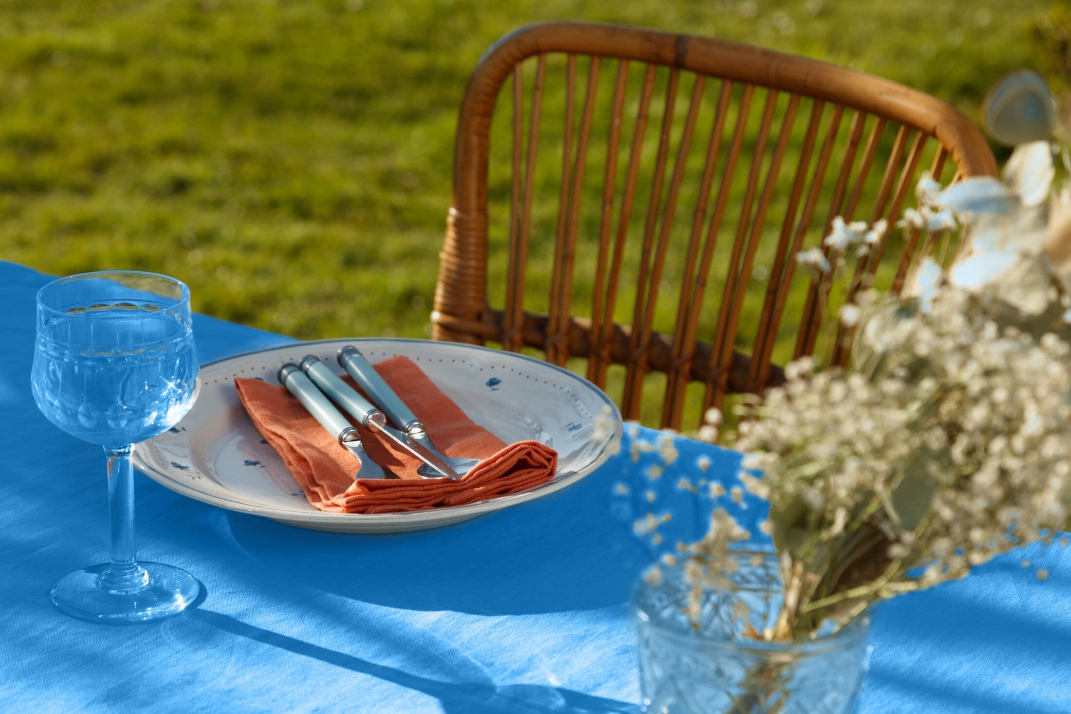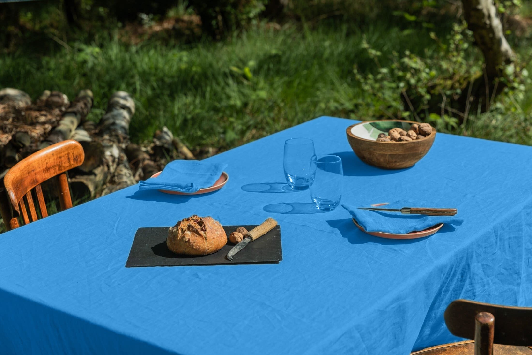 Nappe en lin lavé Fleur Bleue