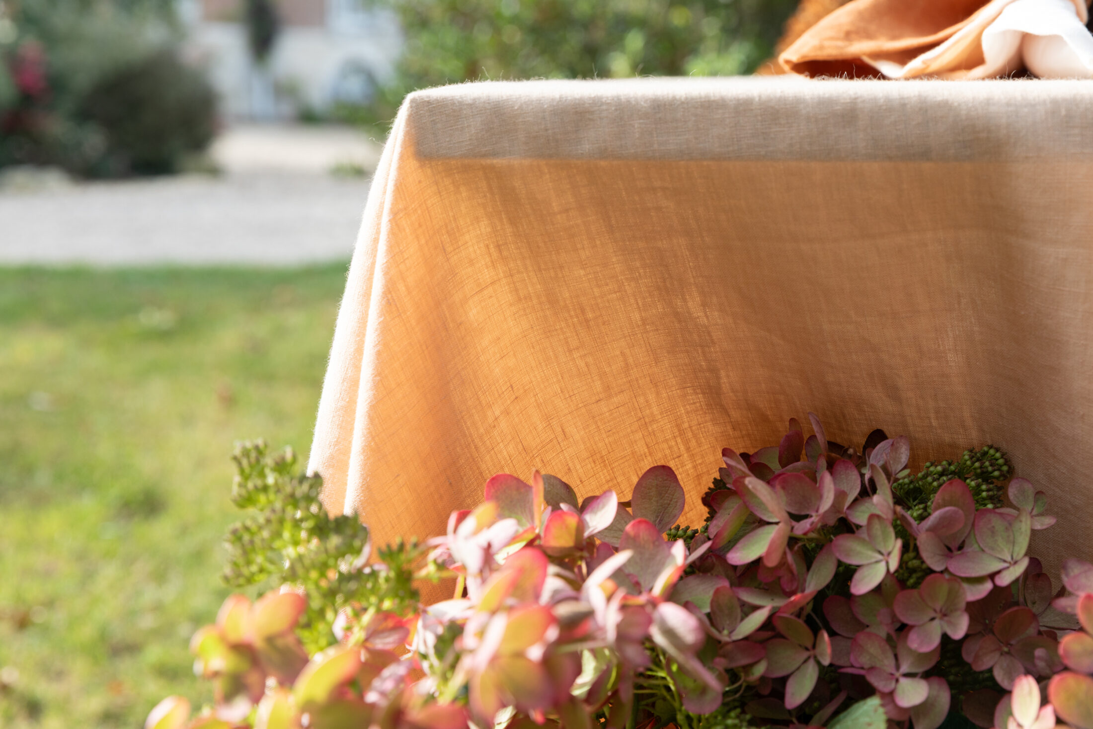 La couleur pêche de cette nappe garde tout son éclat au fil des lavages, ajoutant une touche chaleureuse et ensoleillée à votre décor. Associez-la à des accessoires en bois clair ou des tons pastels pour une décoration harmonieuse et apaisante.