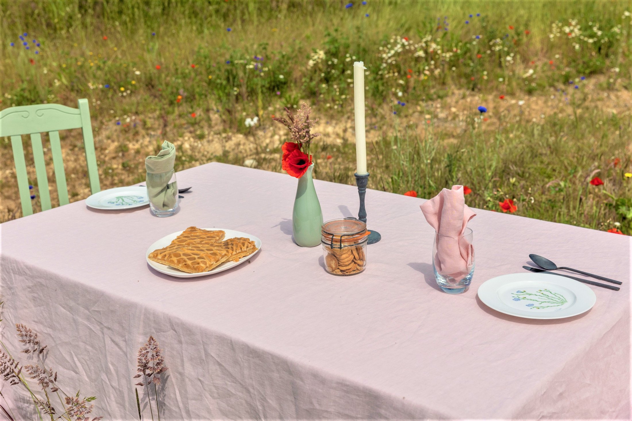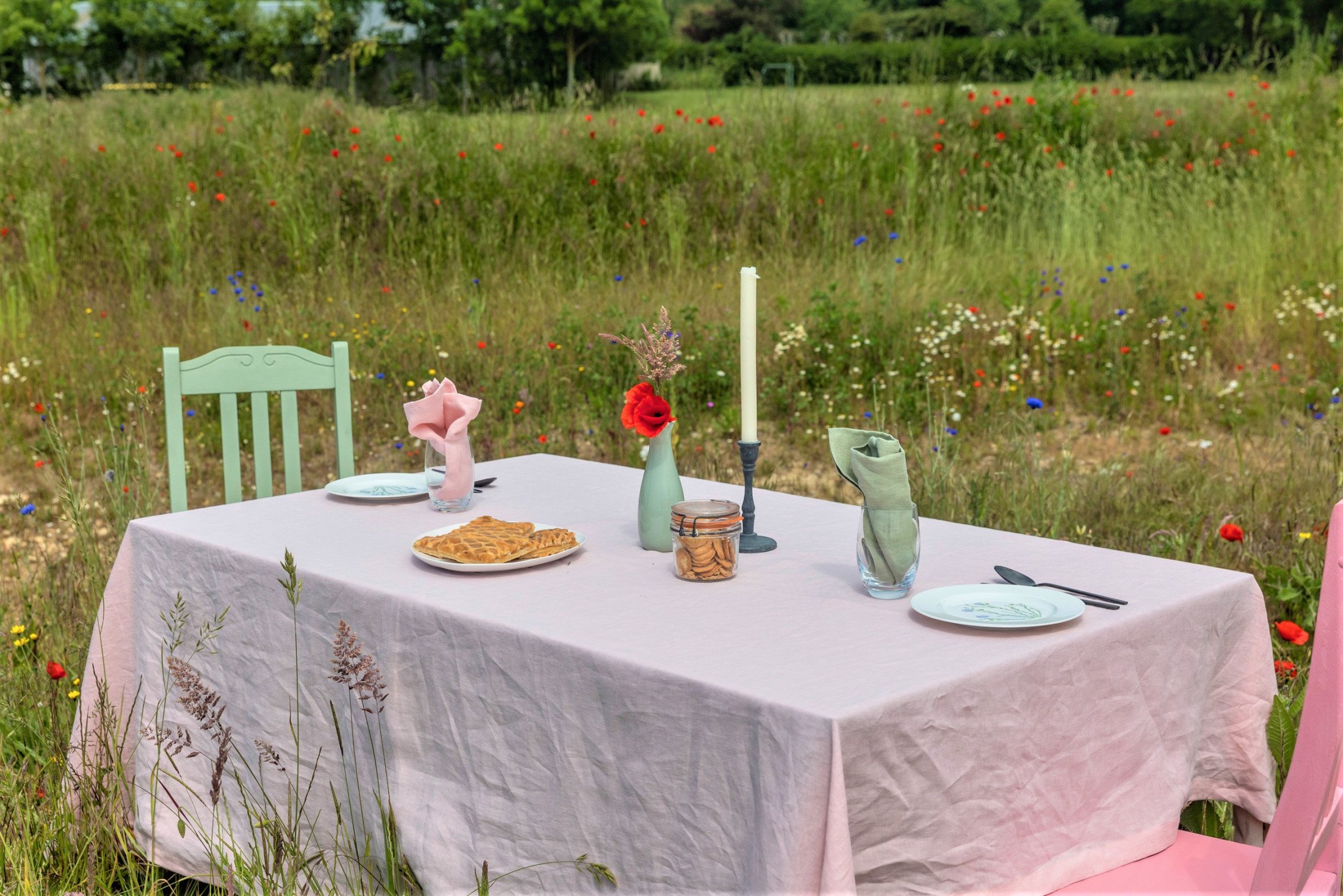 Choisissez la douceur et la délicatesse avec notre nappe en lin lavé Pétale de Rose. Une teinte qui oscille entre le rose pastel et le rose nude.