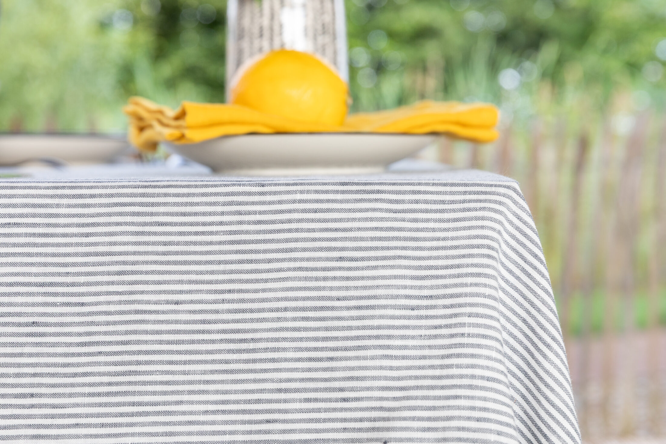 Choisir la nappe rayée Gris Silex, c’est opter pour une pièce à la fois esthétique et pratique, qui traverse les modes et accompagne vos repas avec élégance et simplicité.