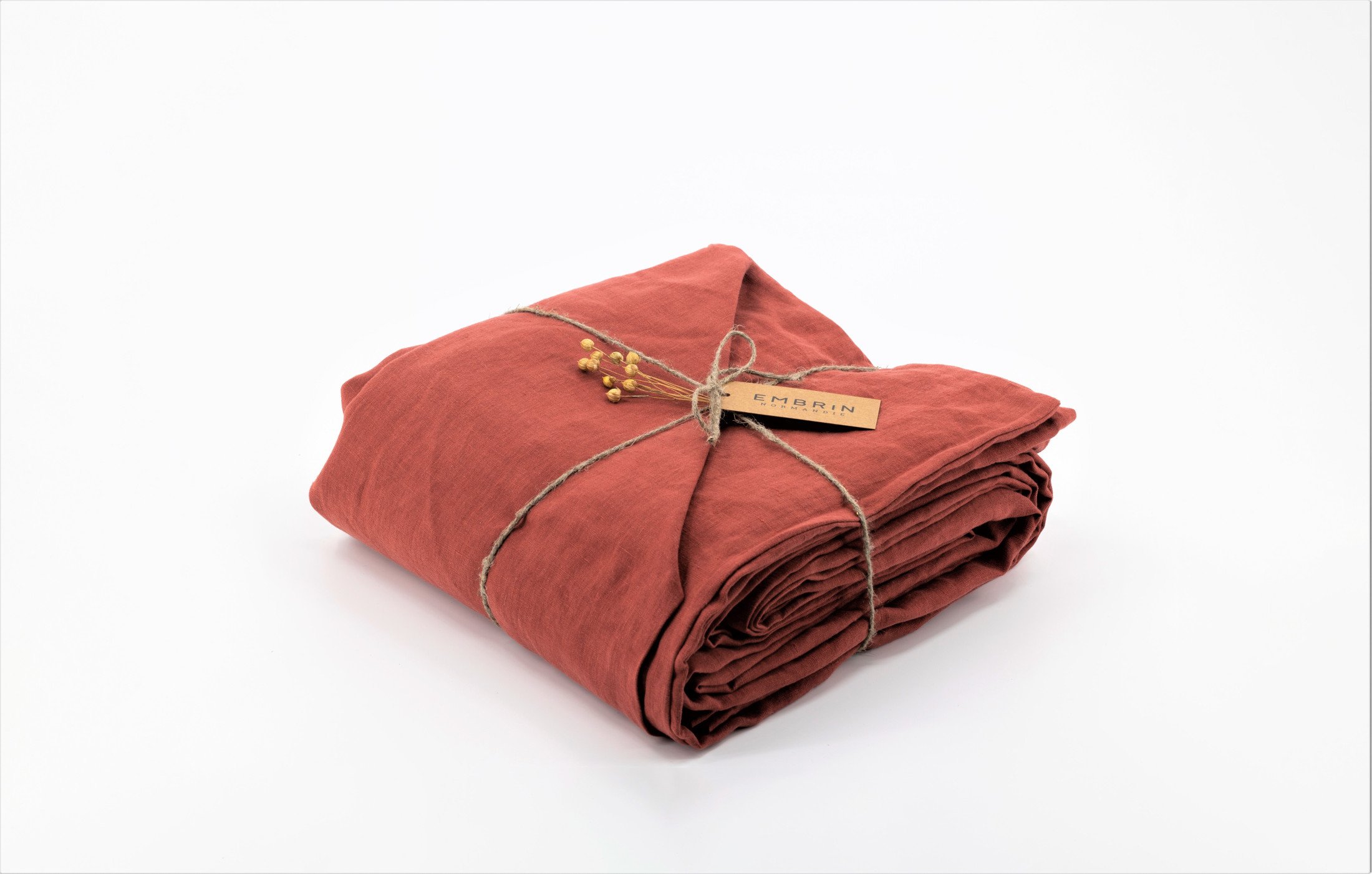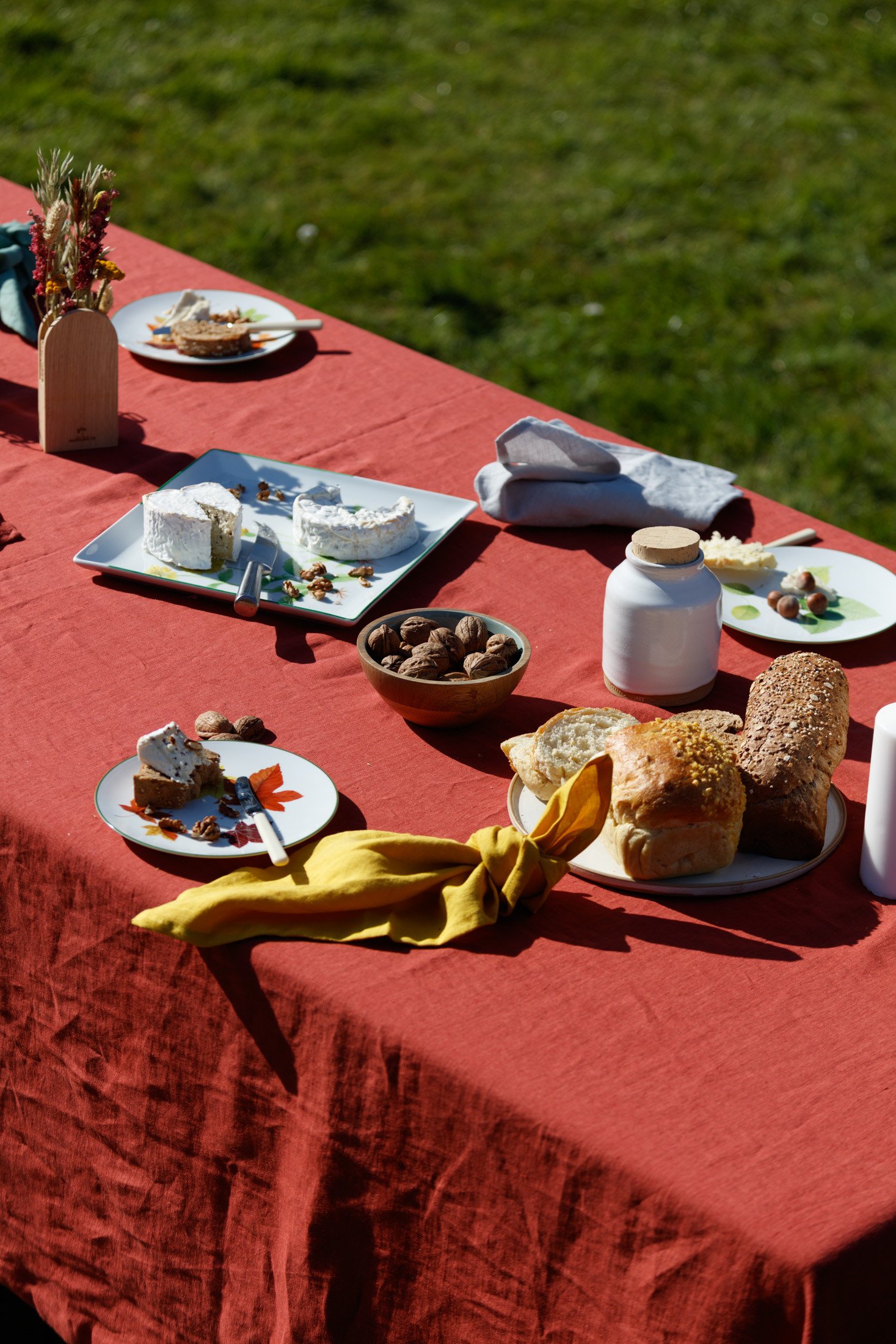 La couleur éclatante Rouge Figue de notre Nappe en Lin Lavé apporte une note chaleureuse à votre décoration de table. C'est un linge de table résistant, élégant et écologique !