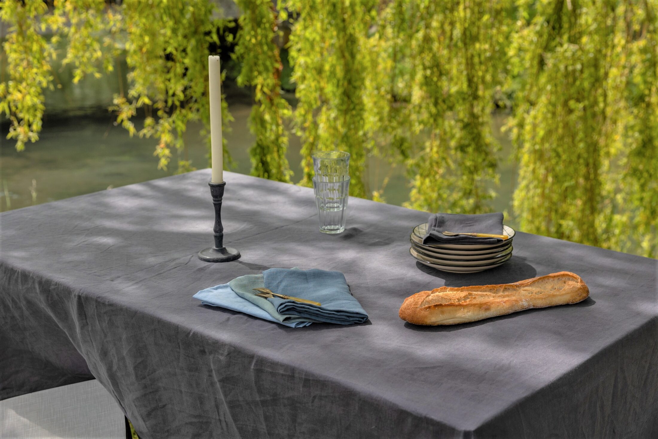 Résistant et durable, le lin lavé est un choix parfait pour les nappes et les serviettes de table. On aime le raffinement et l’authenticité de cette fibre 100% normande. Pratique, on peut laver tout simplement la nappe en lin lavé gris silex en machine jusqu’à 60°. Le séchage est rapide, à l’air libre ou au sèche-linge. Le repassage, quant à lui, est en option quand on aime l’aspect froissé naturel du lin lavé.