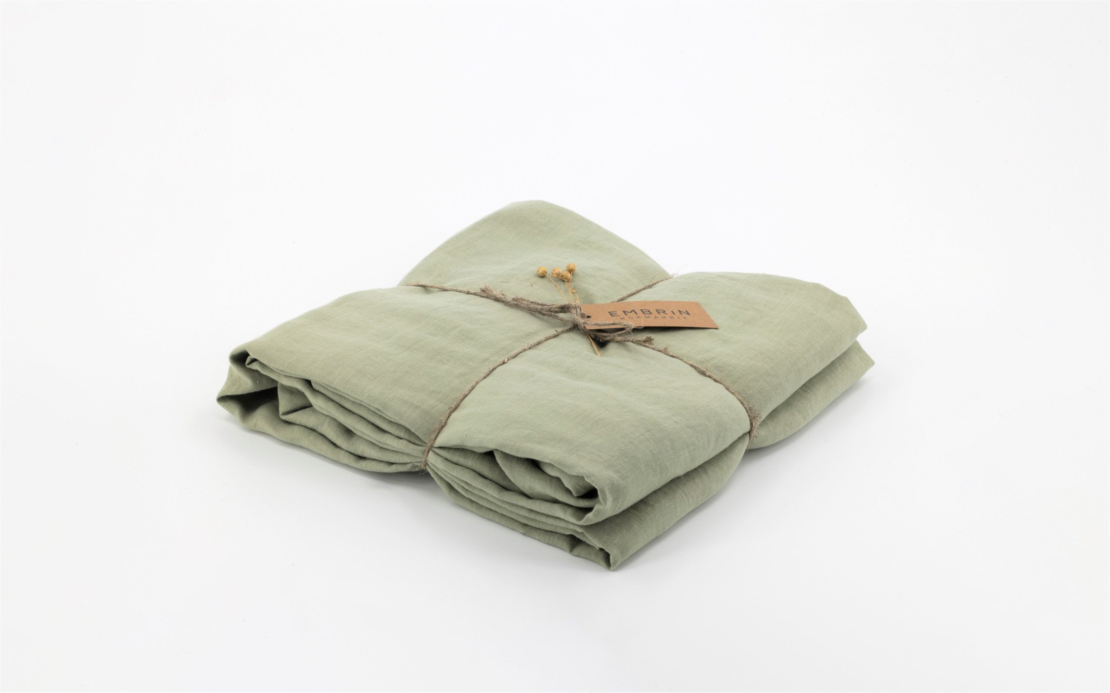 Embrin utilise pour son linge de maison du lin produit localement. De la housse de couette à la serviette de table, en passant par les édredons, tous les produits sont confectionnés dans l’atelier Embrin, basé dans la ferme familiale normande.