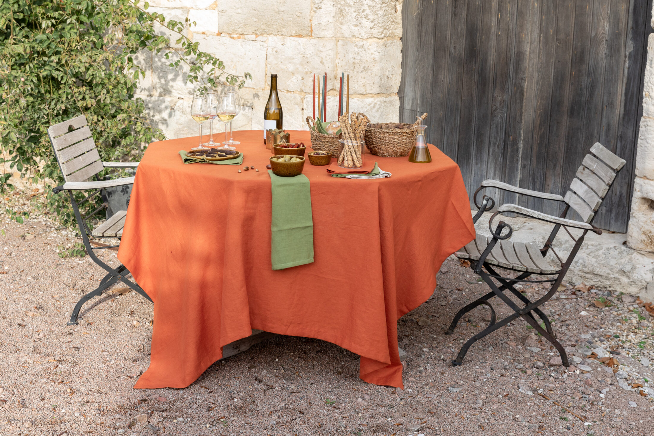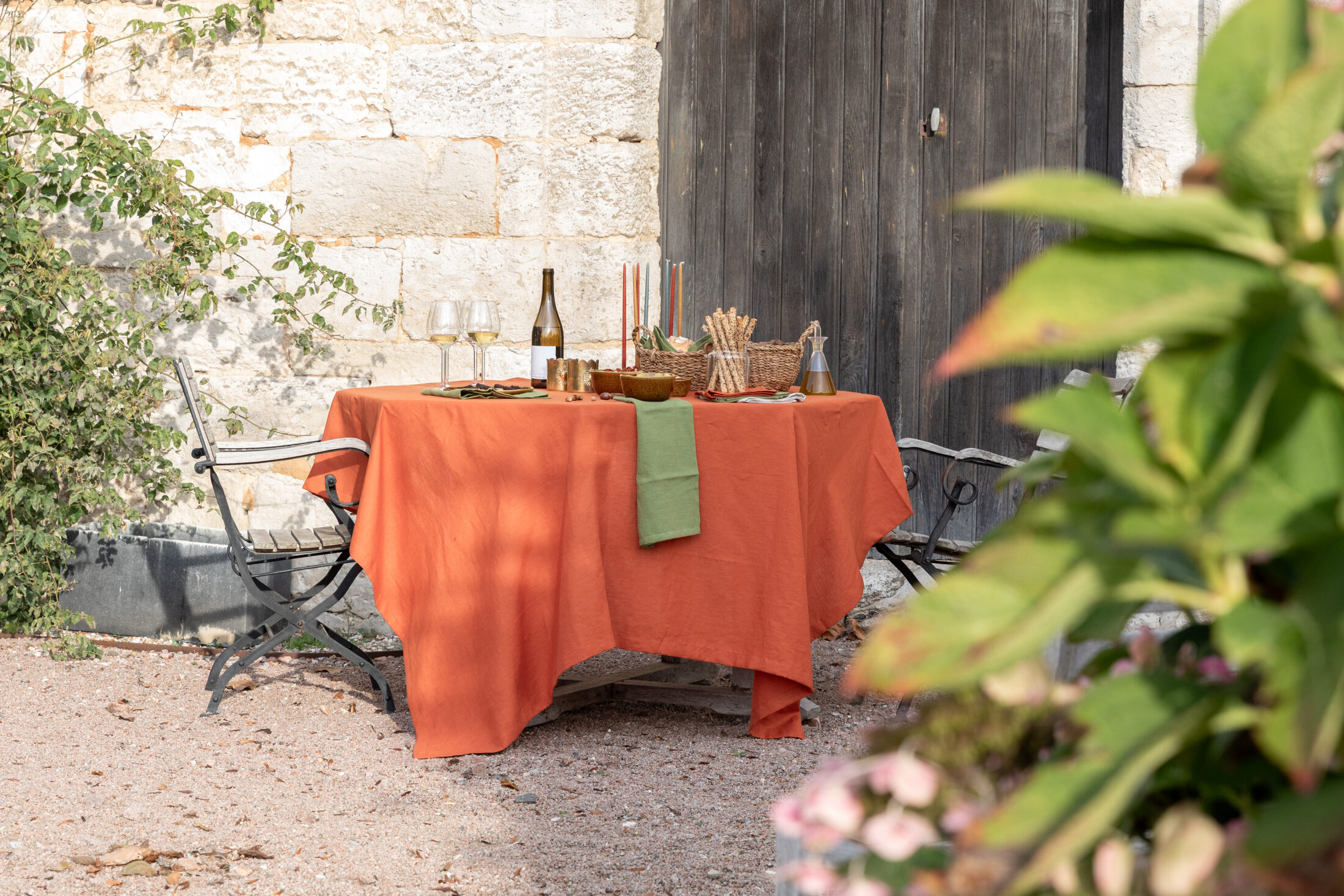 Confectionnée dans notre atelier en Normandie, notre nappe en lin lavé Tomette allie charme naturel et tombé souple, pour une atmosphère conviviale et raffinée. Son aspect légèrement froissé révèle toute l’authenticité du lin lavé et sublime vos repas sans effort.
