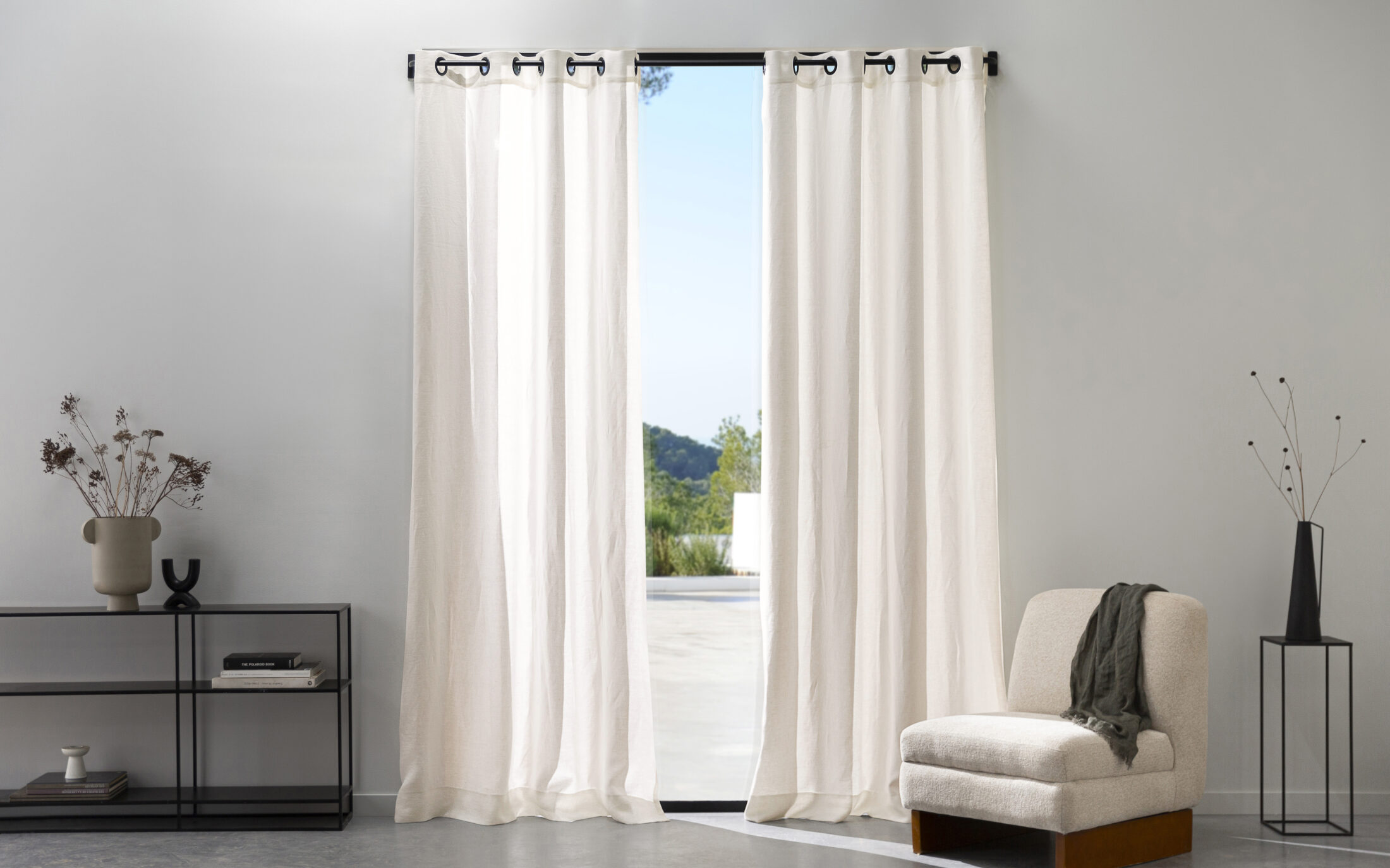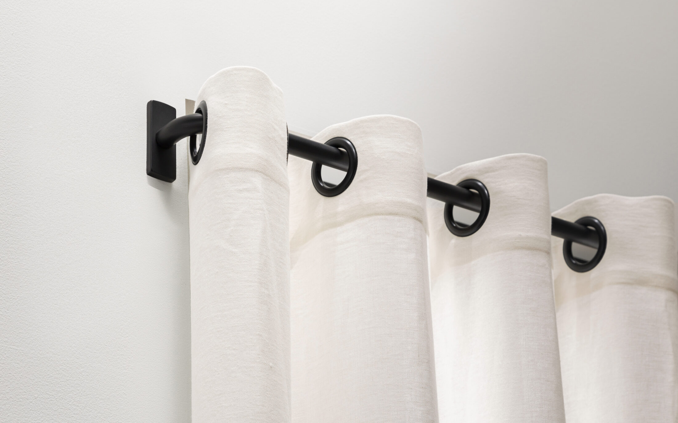 Ce rideau dispose d'une finition oeillets de coloris noir mat. Il est vendu sans doublure : pour créer votre propre rideau sur mesure, découvrez notre configurateur de rideaux.