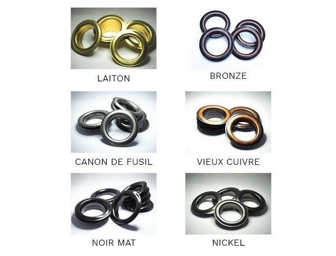 - Tête de rideaux : Oeillets de diamètre intérieur 40 mm - coloris au choix (noir mat sur les photos)