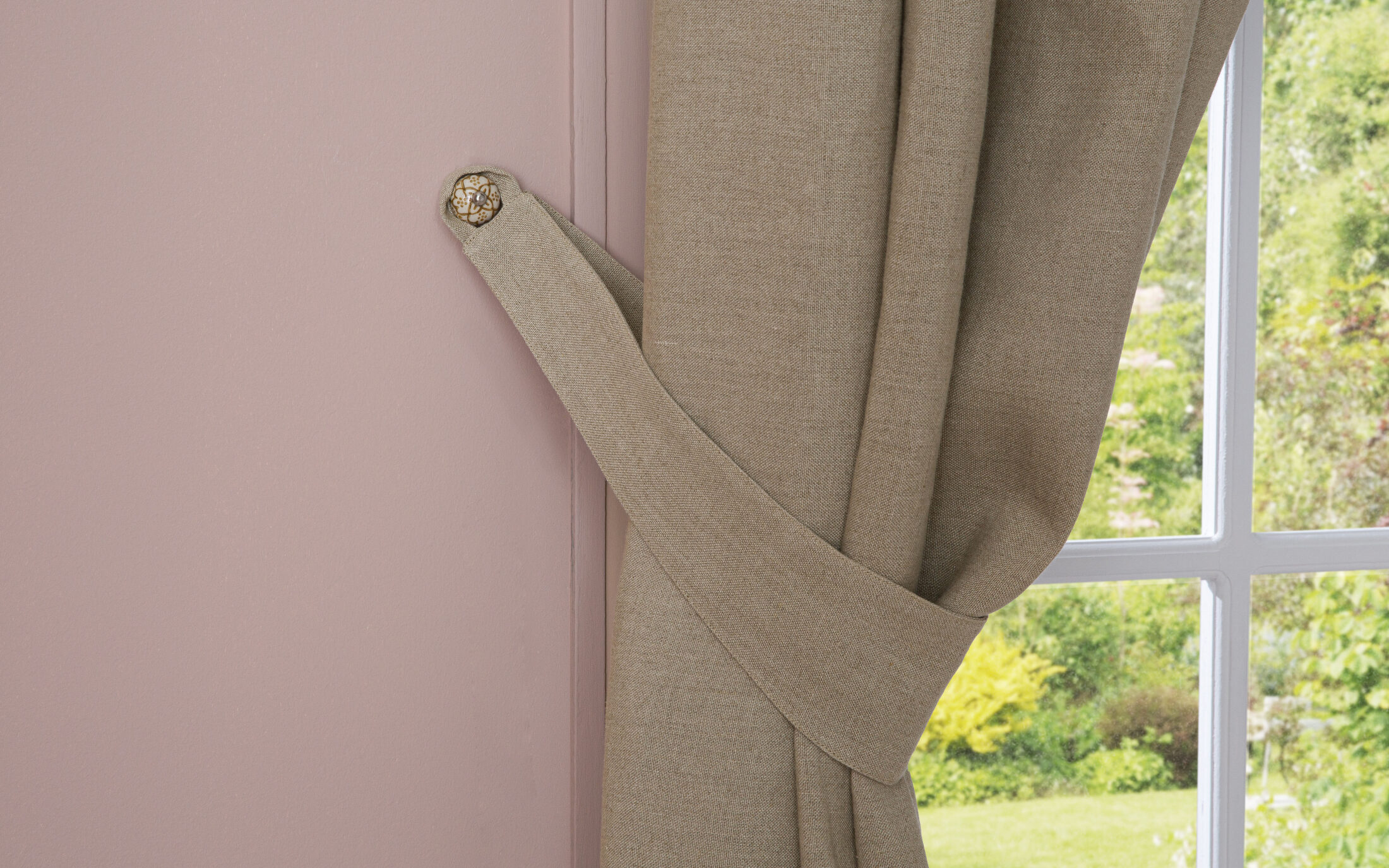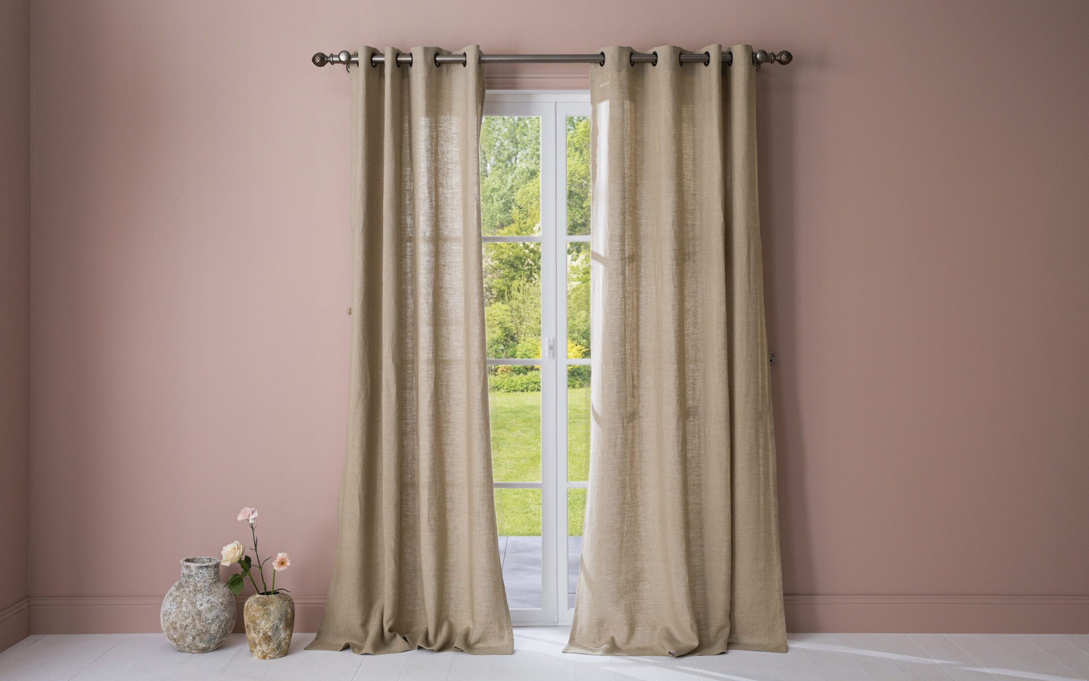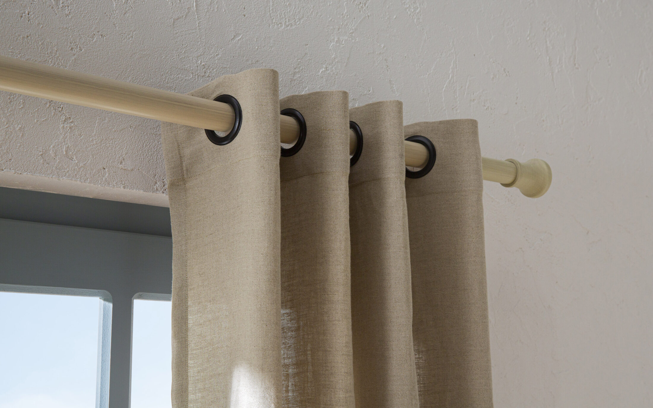 Ce rideau en lin couleur ficelle est très chic et s'adapte à tous les styles de décoration. Il offre une belle texture naturelle qui se marie bien avec le bois et les autres tissus naturels.
