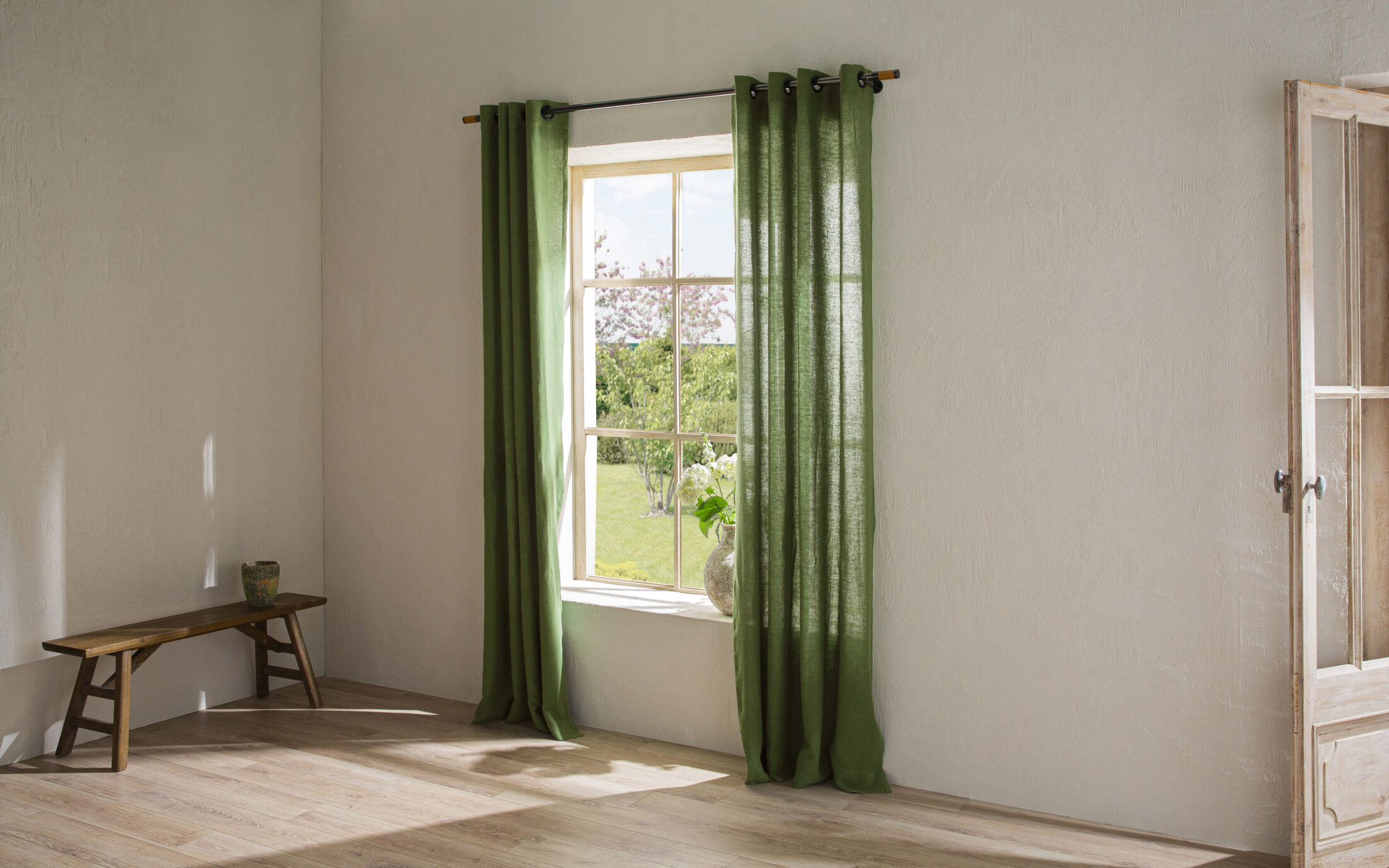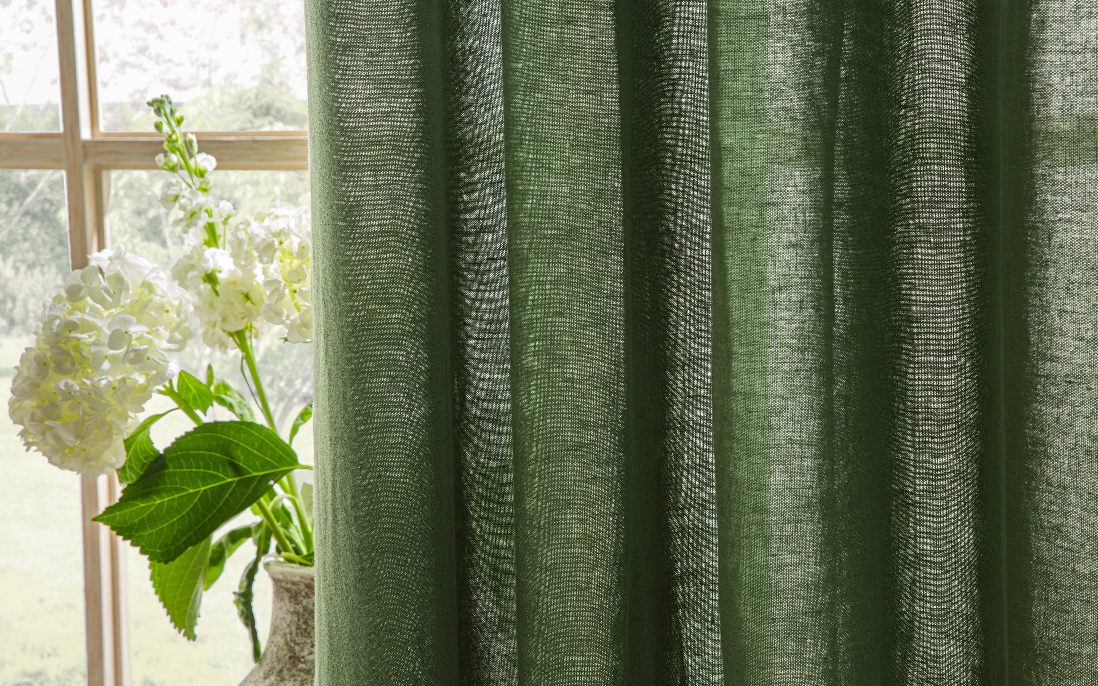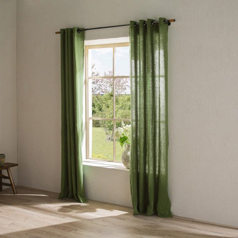 Ce rideau en lin couleur vert mousse est parfait pour mon bureau. Il ajoute une touche de nature et de fraîcheur.
