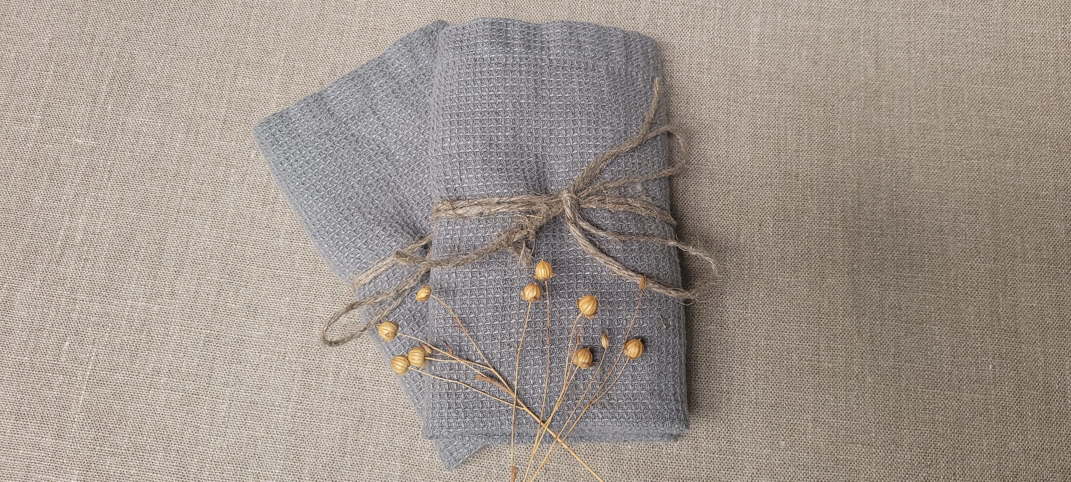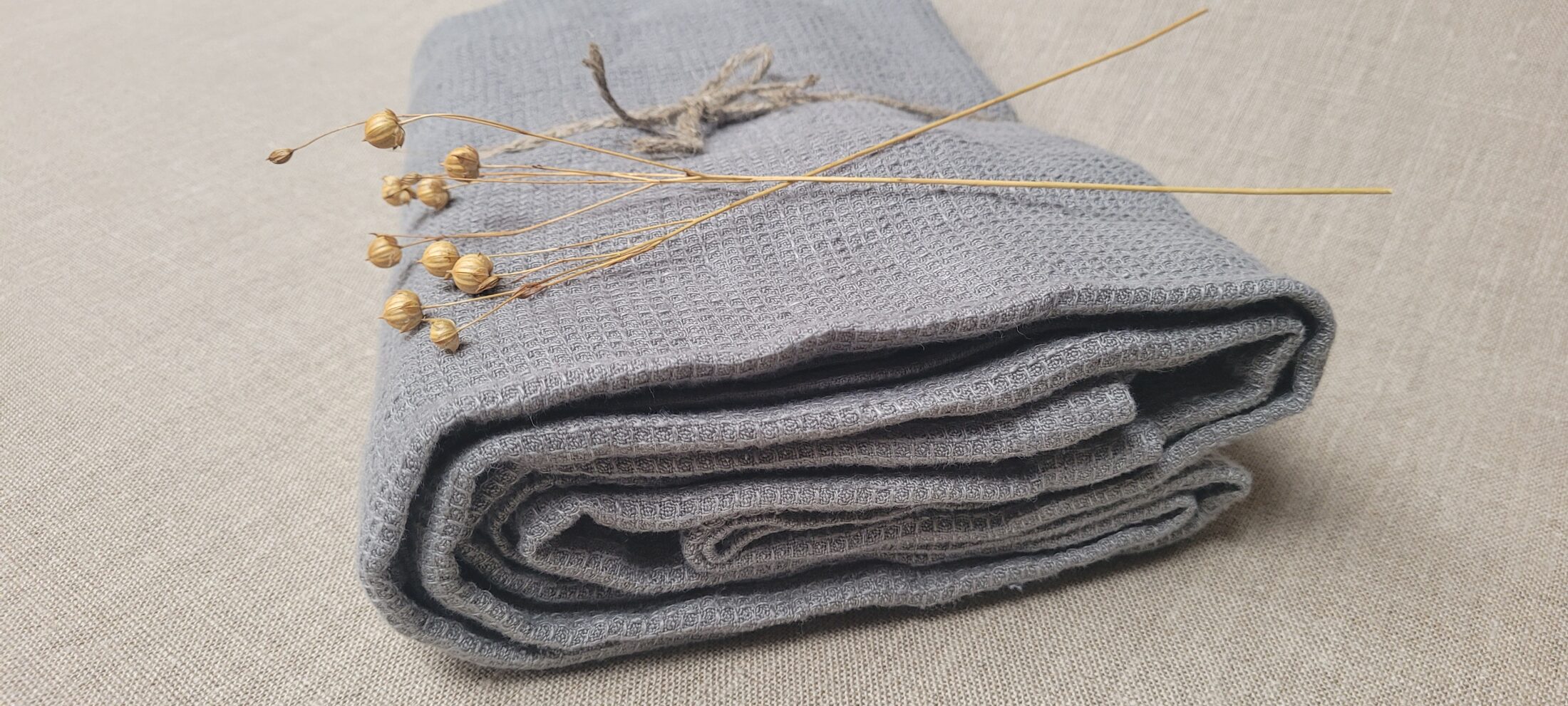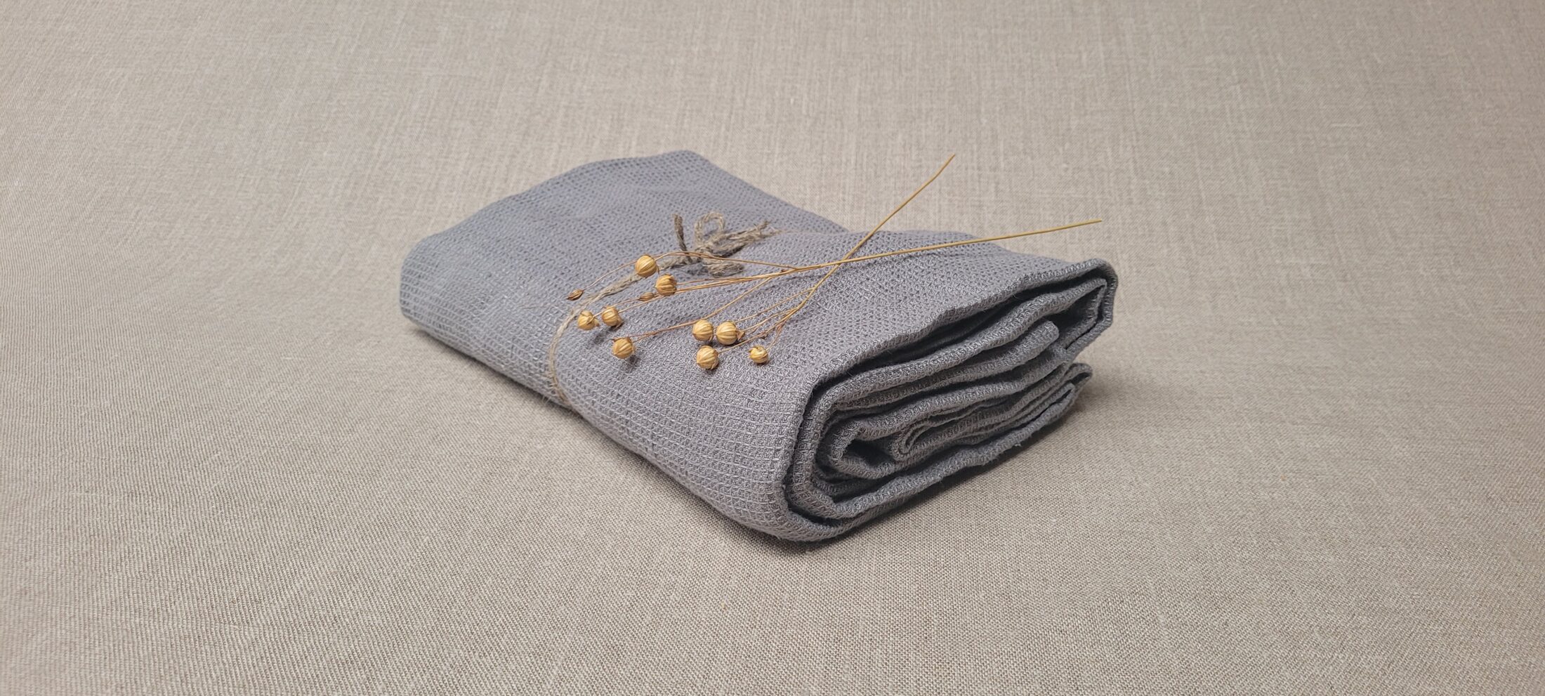 Serviette Nid d'Abeille en Lin Lavé Gris Brume