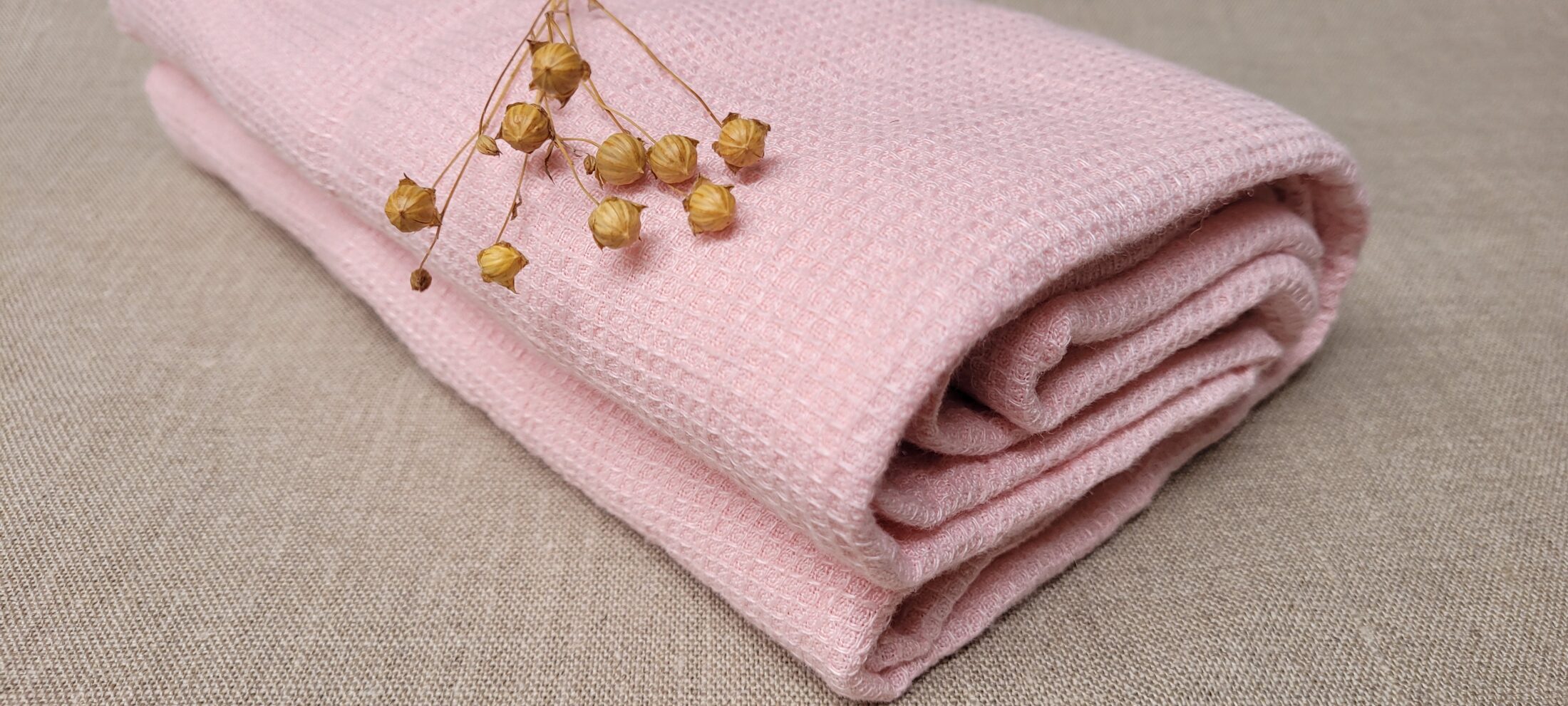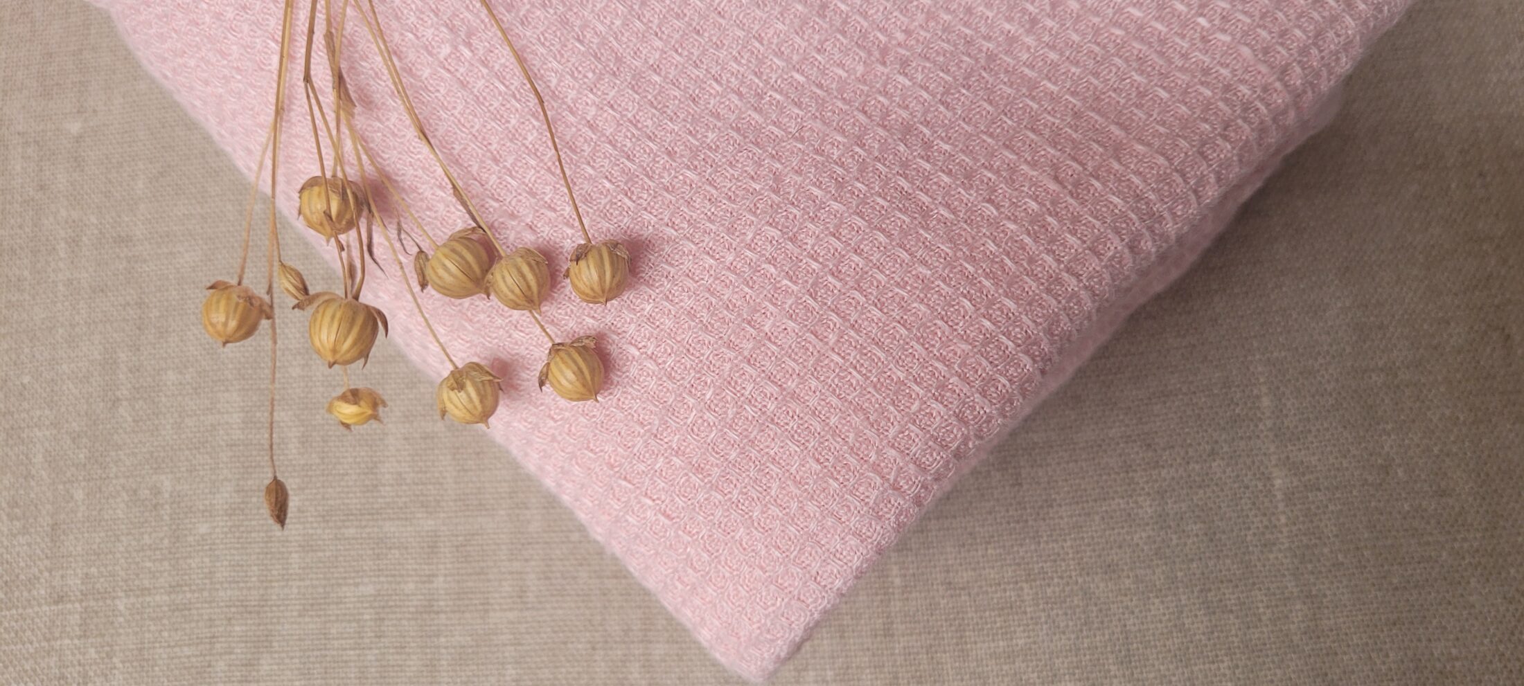Serviette Nid d'Abeille en Lin Lavé Pétale de Rose