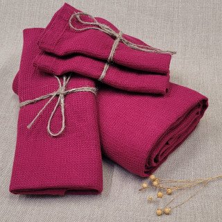 Serviette Nid d'Abeille en Lin Lavé Rose Bruyère