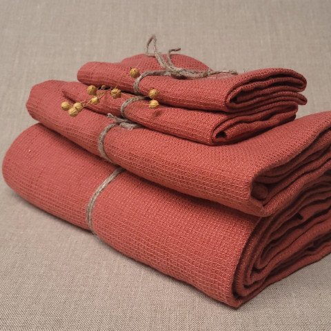 Serviette Nid d'Abeille en Lin Lavé Rouge Figue