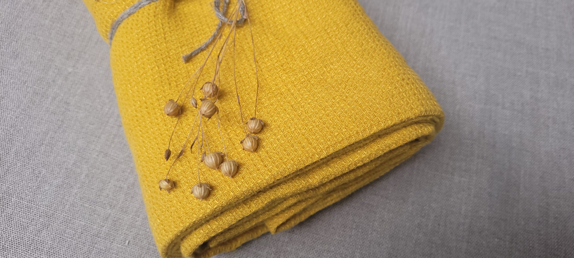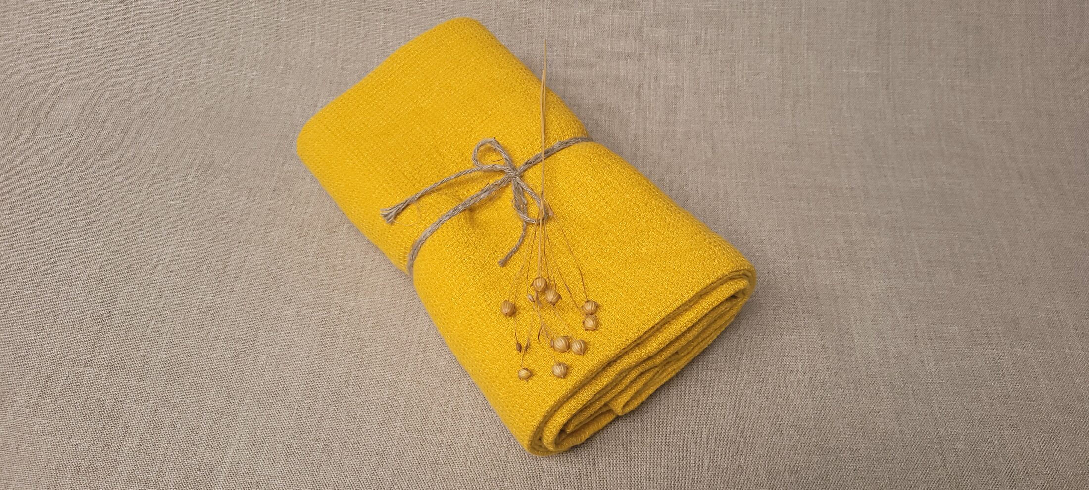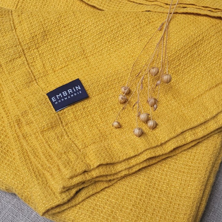 Serviette Nid d'Abeille en Lin Lavé Safran