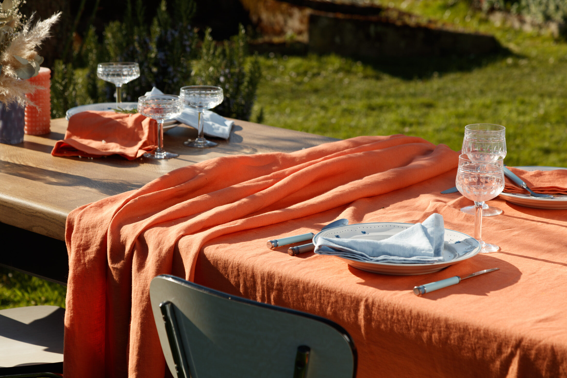 D'une jolie couleur abricot, ces Serviettes de Table en Lin Lavé apporteront une touche ensoleillée et chaleureuse à votre table à manger.